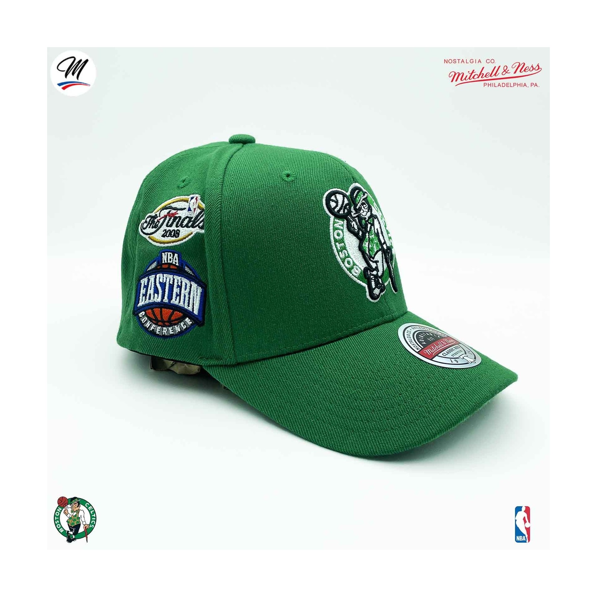 Patch THE FINALS 2008, NBA EASTERN CONFERENCE och CELTICS broderade på sidorna med vackra gröna färger.