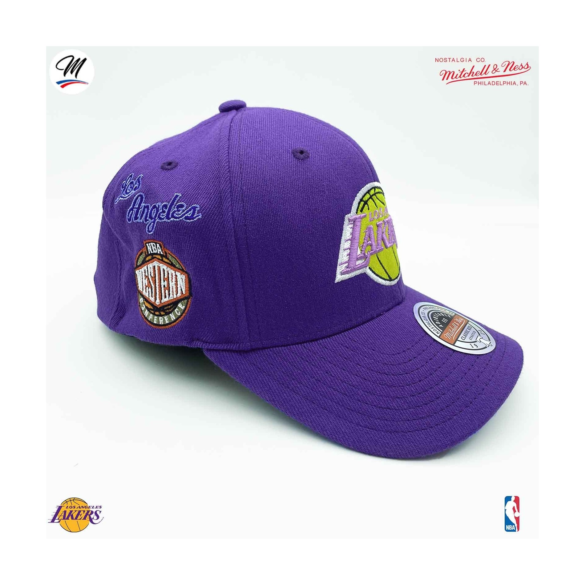 Mitchell & Ness - NBA Snapback Cap NBA Los Angeles Lakers "Home Town Classic" "Home Town Classic" cap broderad på framsidan. Böjt visir, logotyp från 17 gånger NBA Champion och NBA Western conference på sidan. 82% akryl 15% ull 3% elastan. Snapback-justering baktill