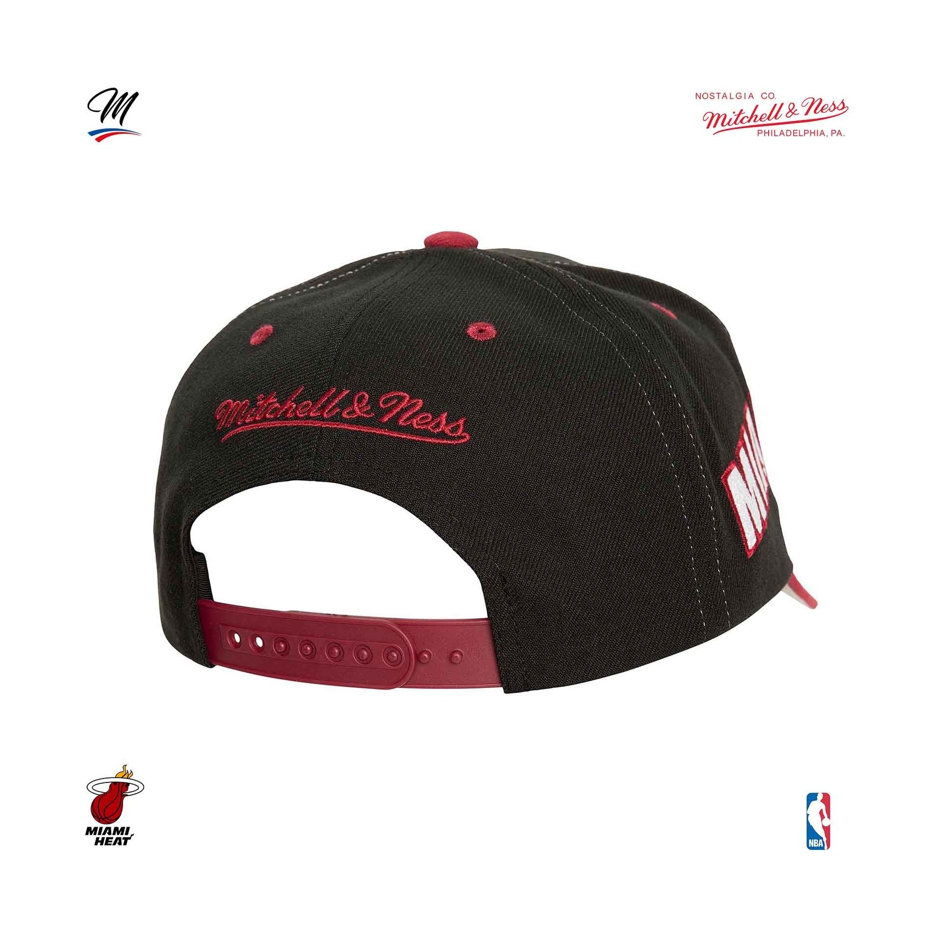 Mitchell & Ness - Miami Heat hardwood classic "Overbite" NBA Snapback keps med broderad Miami Heat logo på framsida och sidor. Böjt visir. 100% polyester. Snapback-justering baktill