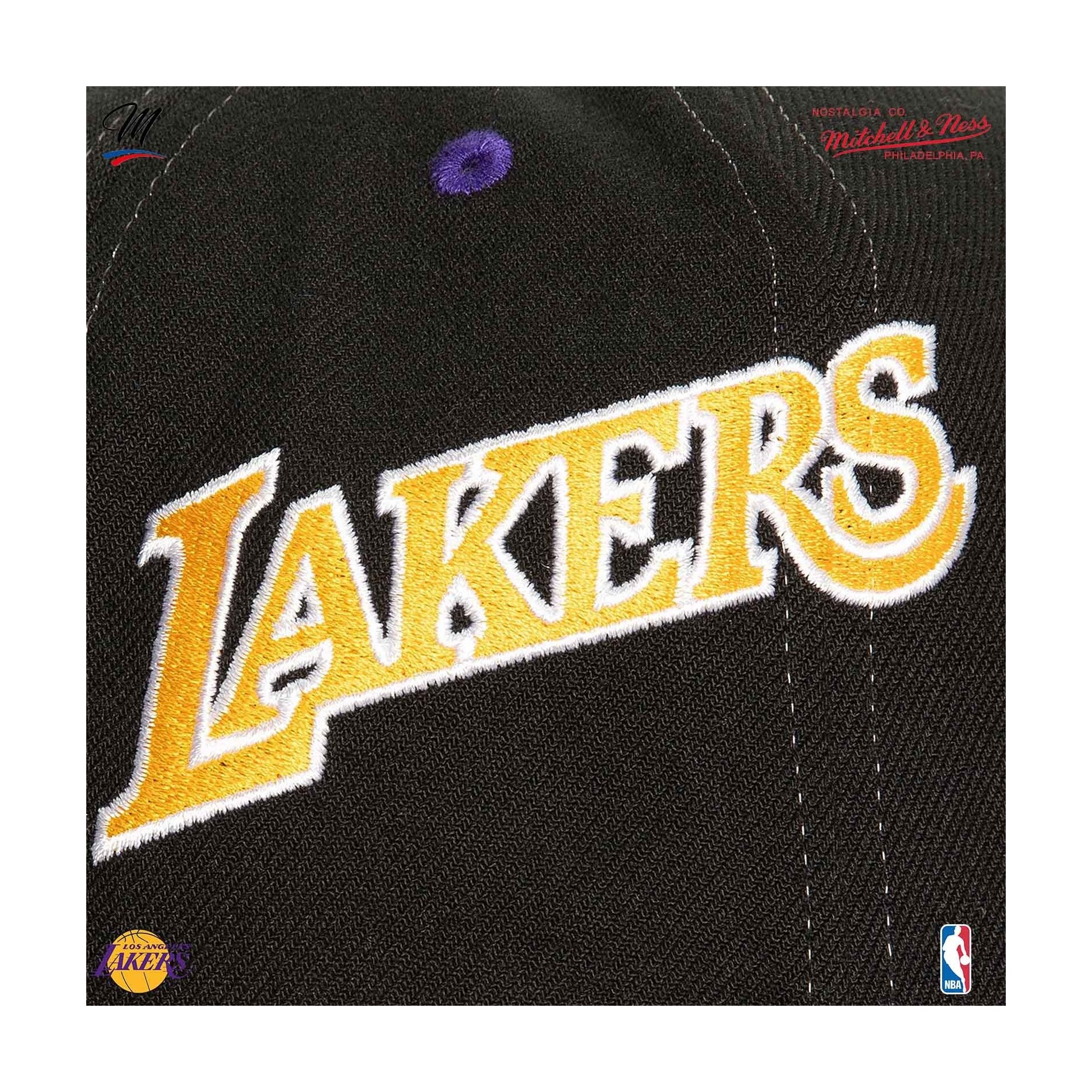 Mitchell & Ness - Los Angeles Lakers hardwood classic "Overbite" NBA Snapback keps med broderad Los Angeles Lakers logga fram och på sidorna. Böjt visir, 100% polyester. Snapback-justering baktill