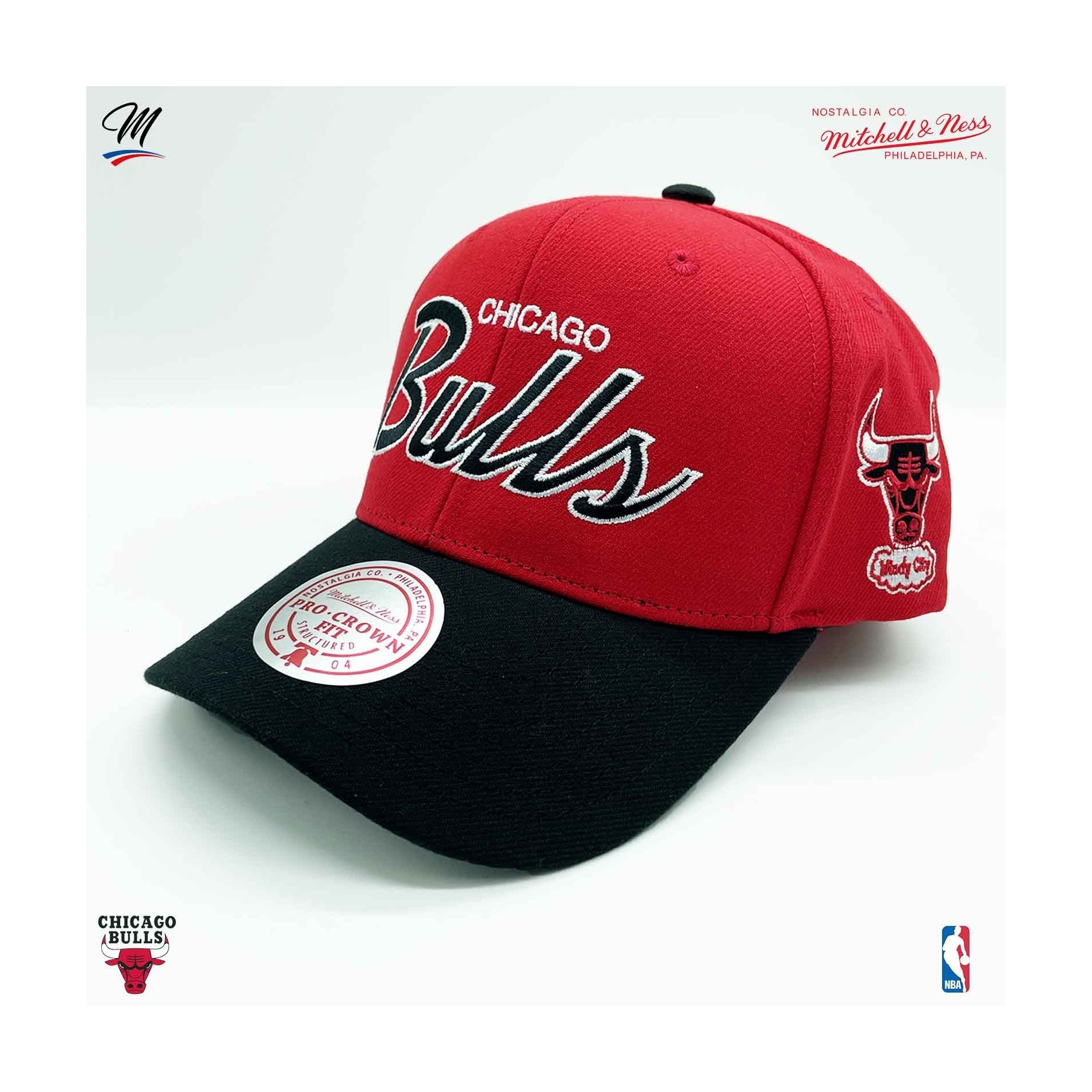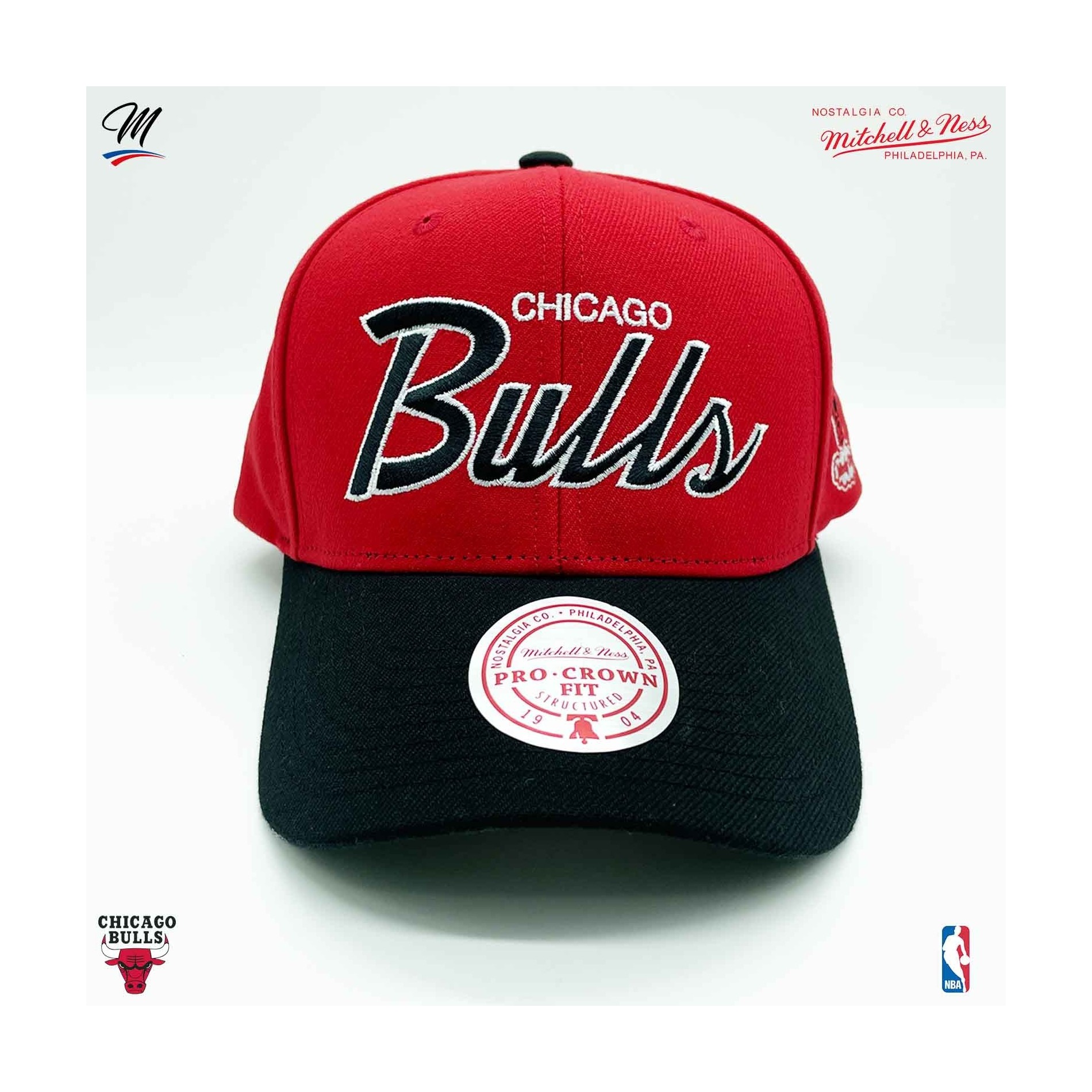 Mitchell & Ness - Chicago Bulls Hardwood Classic "Team Script 2.0" NBA Snapback Cap med broderat Chicago Bulls på framsidan och Bulls logga på sidan. Böjd skärm. 100% polyester. Snapback-justering baktill