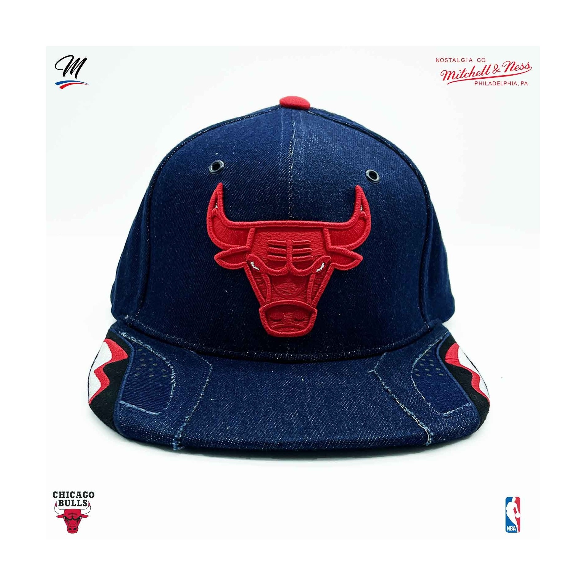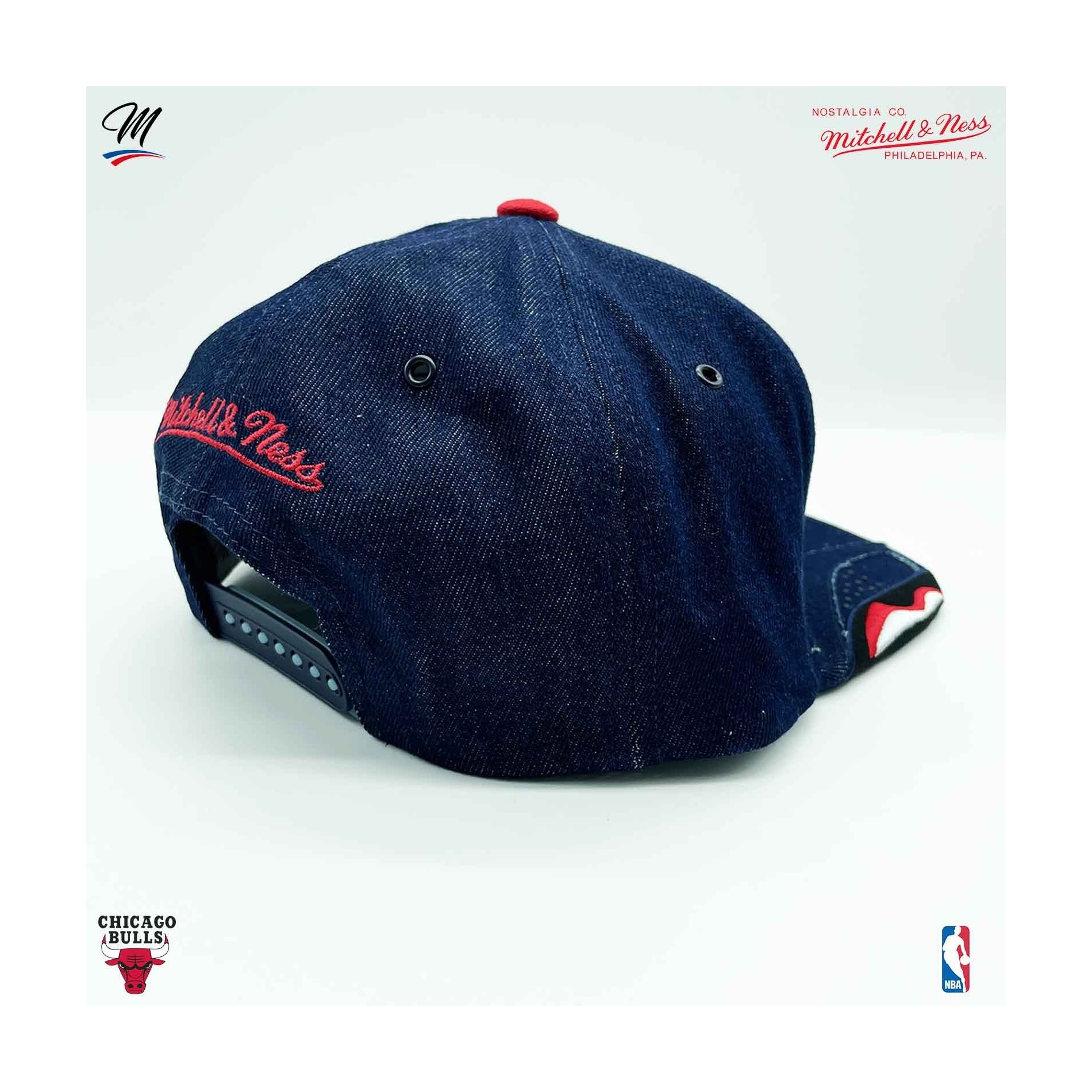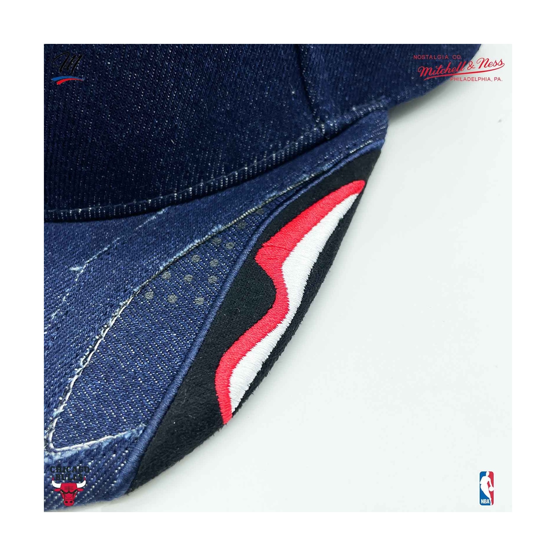 NBA Draft- och Bulls-brodyr på sidorna. Mitchell & Ness-brodyr på baksidan.