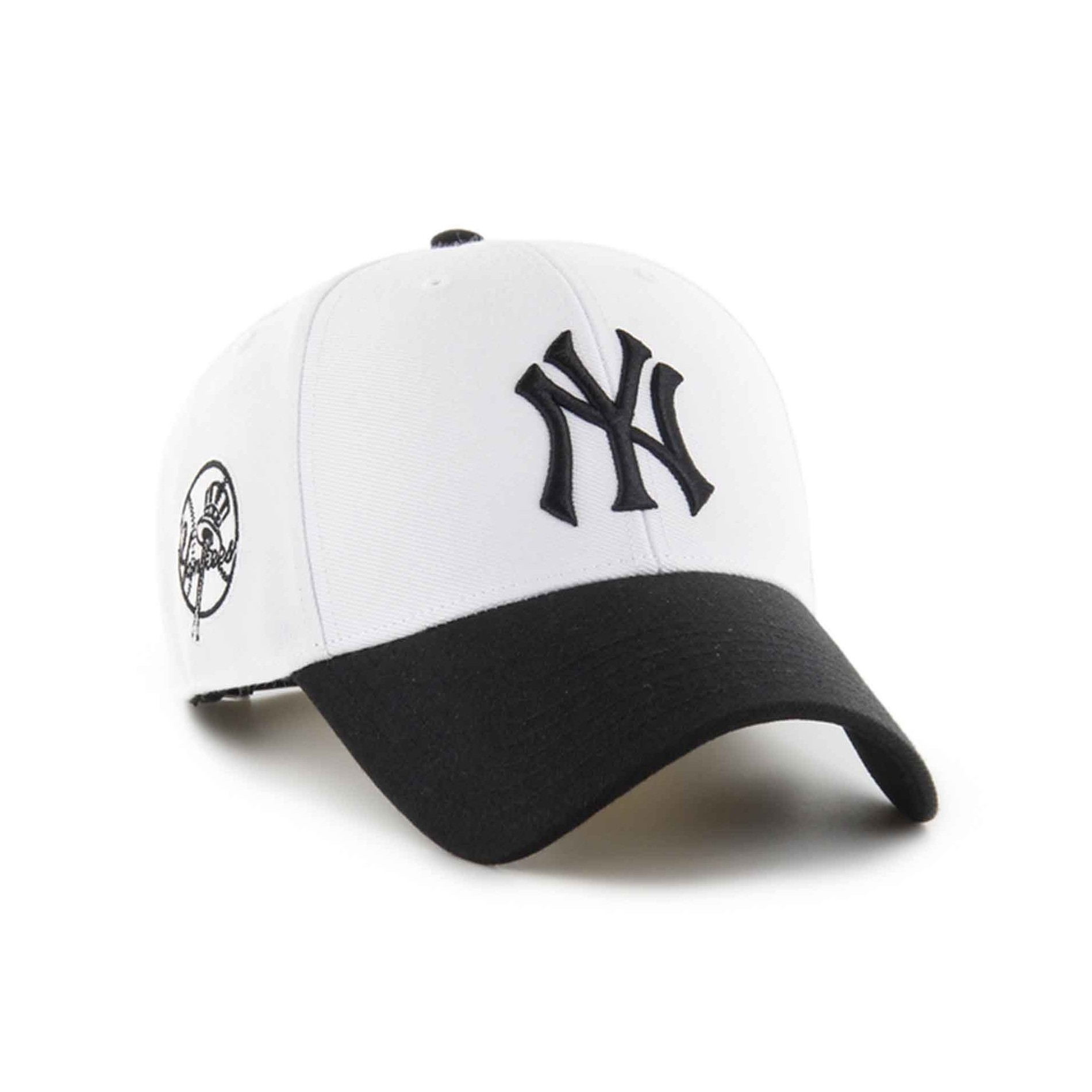 '47 MVP New York Yankees Sure Shot Snapback är en strukturerad, böjd basebollkeps med präglat broderi på framsidan, '47 och New York Yankees logotyp broderad på sidorna och en snapback-knäppning baktill.