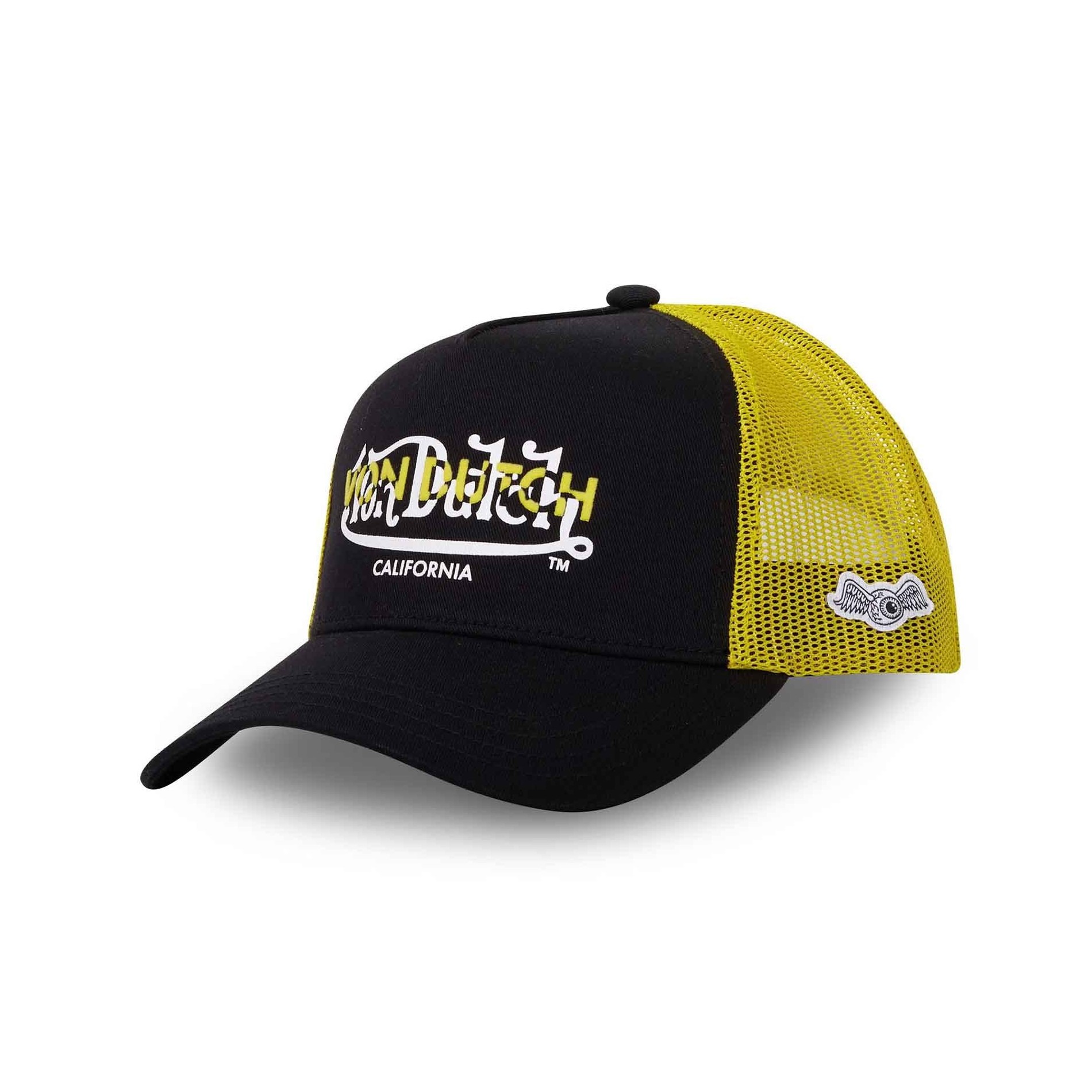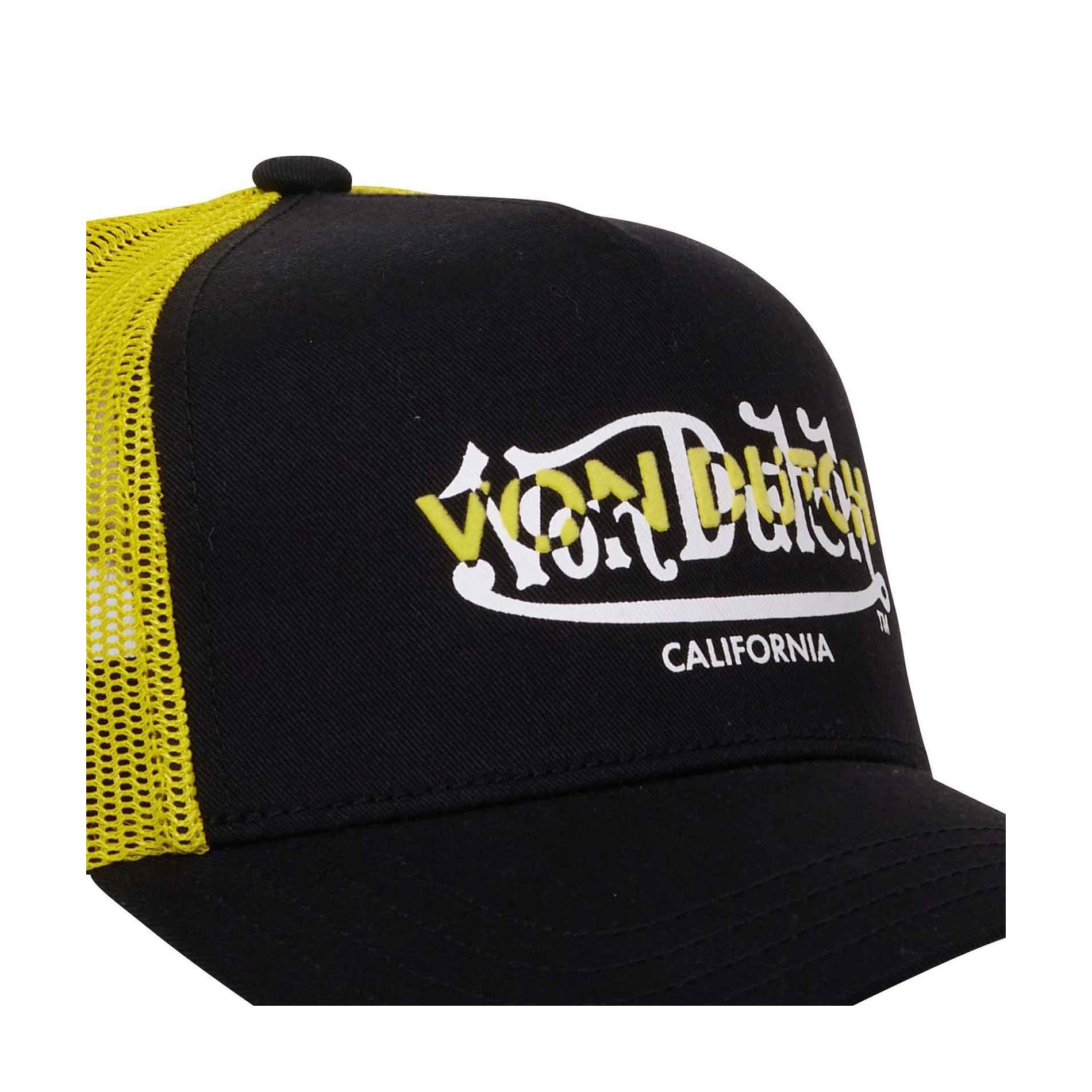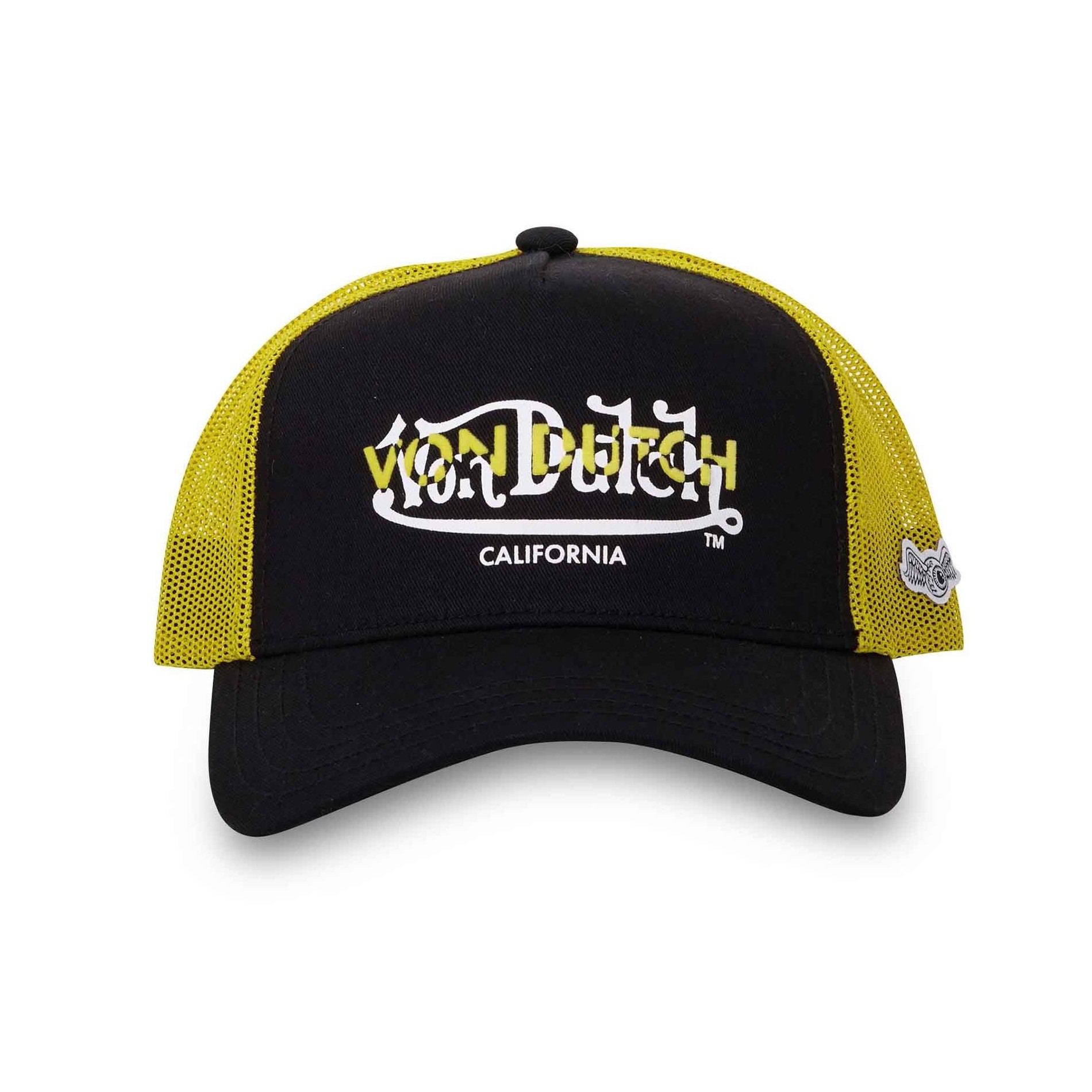 Denna originella keps är tvåfärgad svart med gul mesh på baksidan och Von Dutch-logotypen på framsidan.