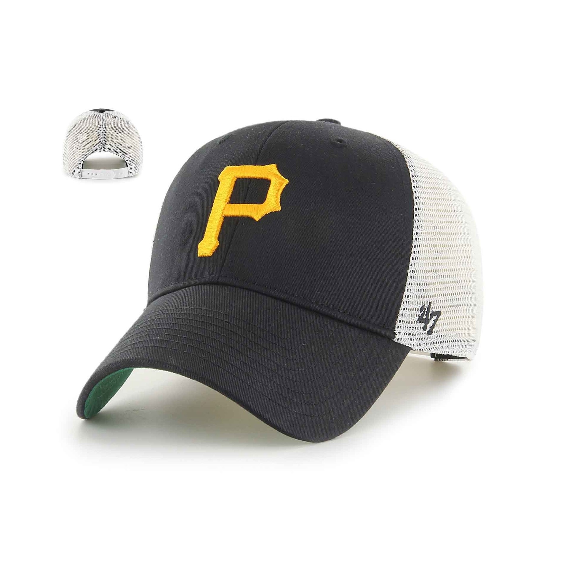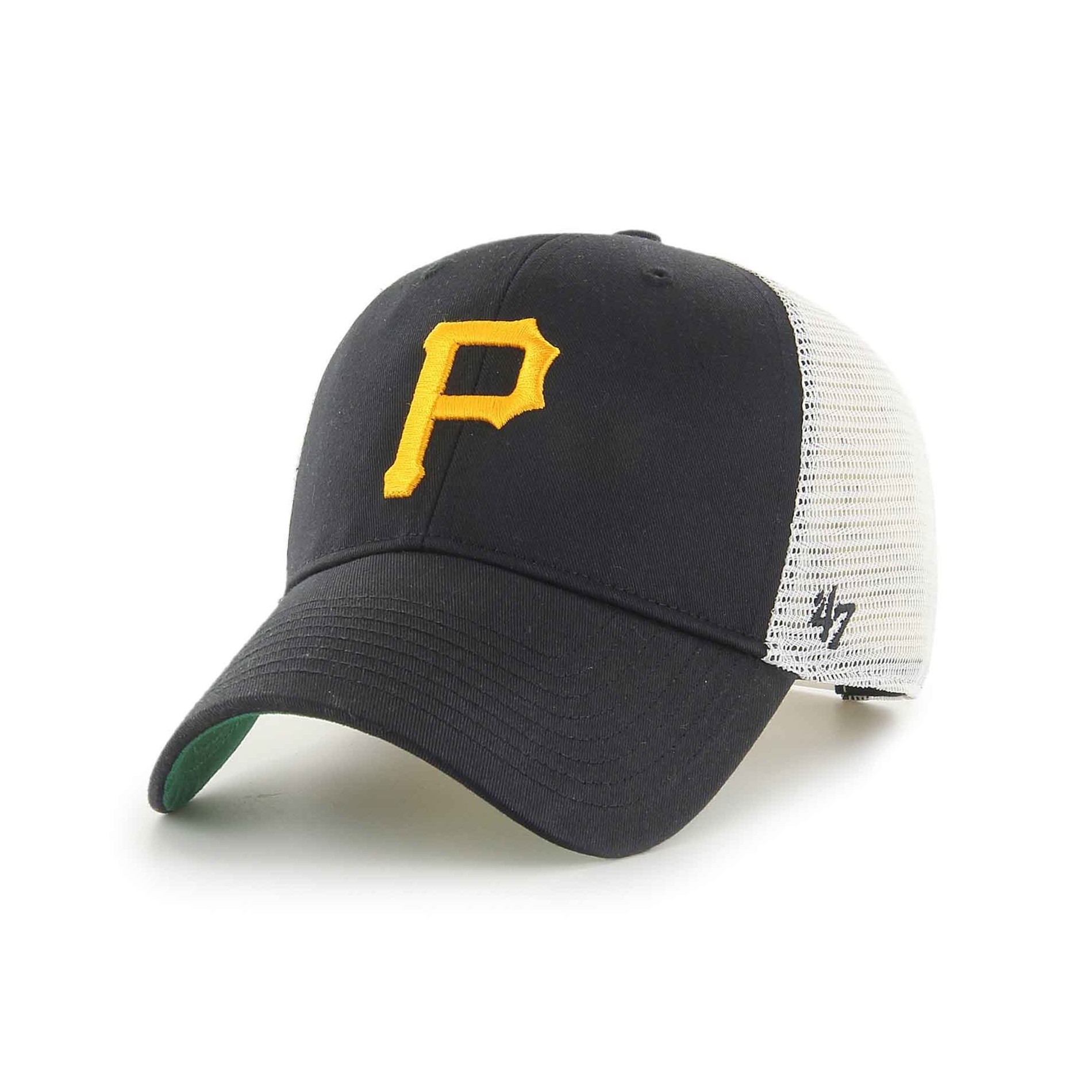 Branson '47 MVP Pirates Pittsburgh cap är en strukturerad, böjd Trucker basebollkeps med upphöjt broderi på framsidan och '47 broderi på sidan.