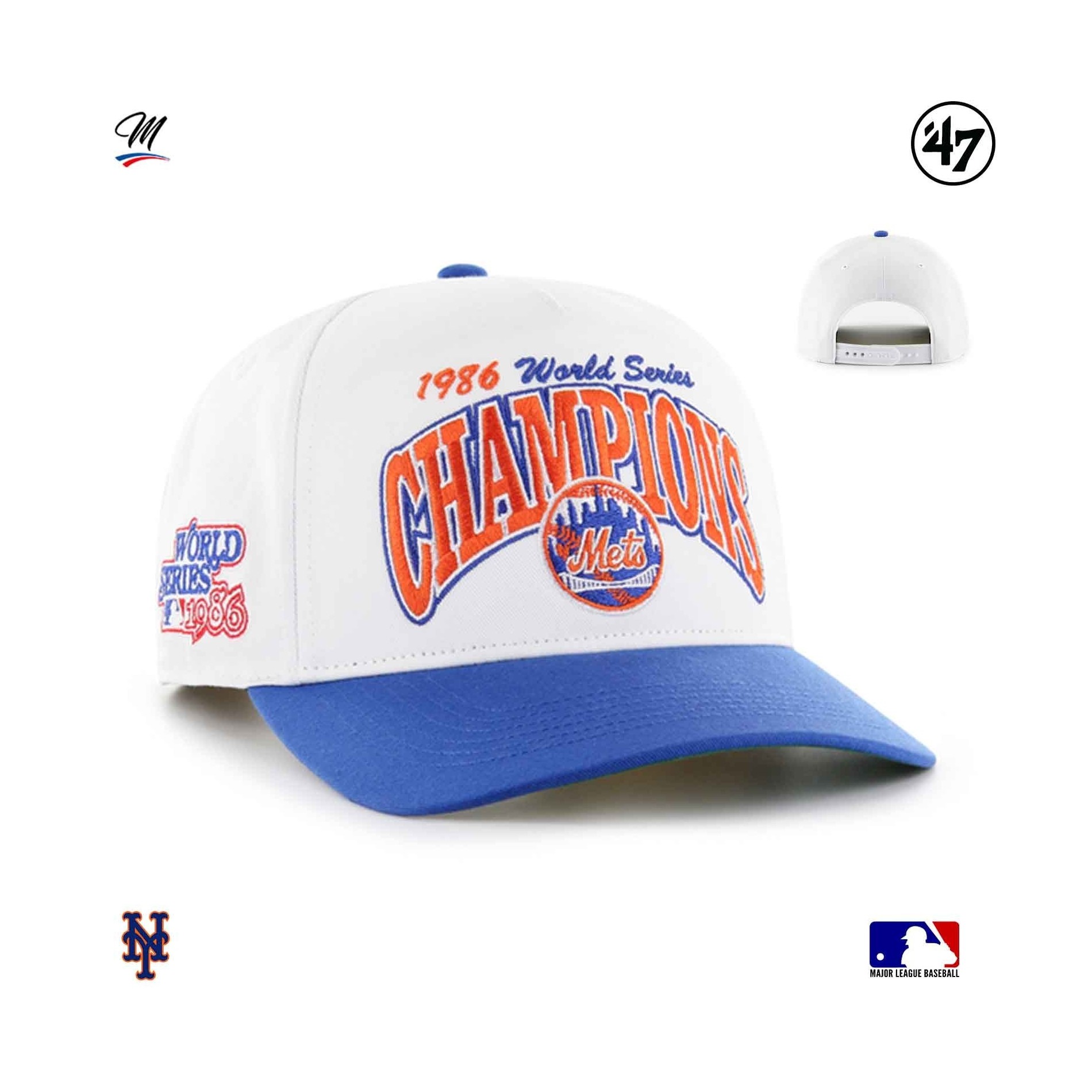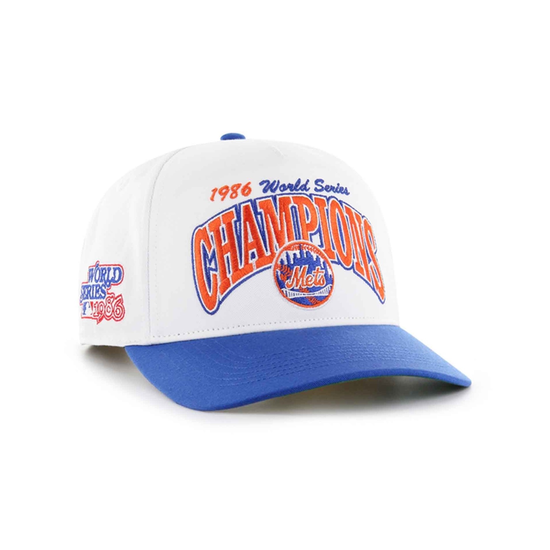 MLB New York Mets Arch Camp Hitch cap är en trendig, strukturerad basebollkeps med platt skärm, präglat broderi på framsidan, 1986 World Series broderad patch på höger sida, '47 broderi på vänster sida. Justerbart snapback-fäste baktill.