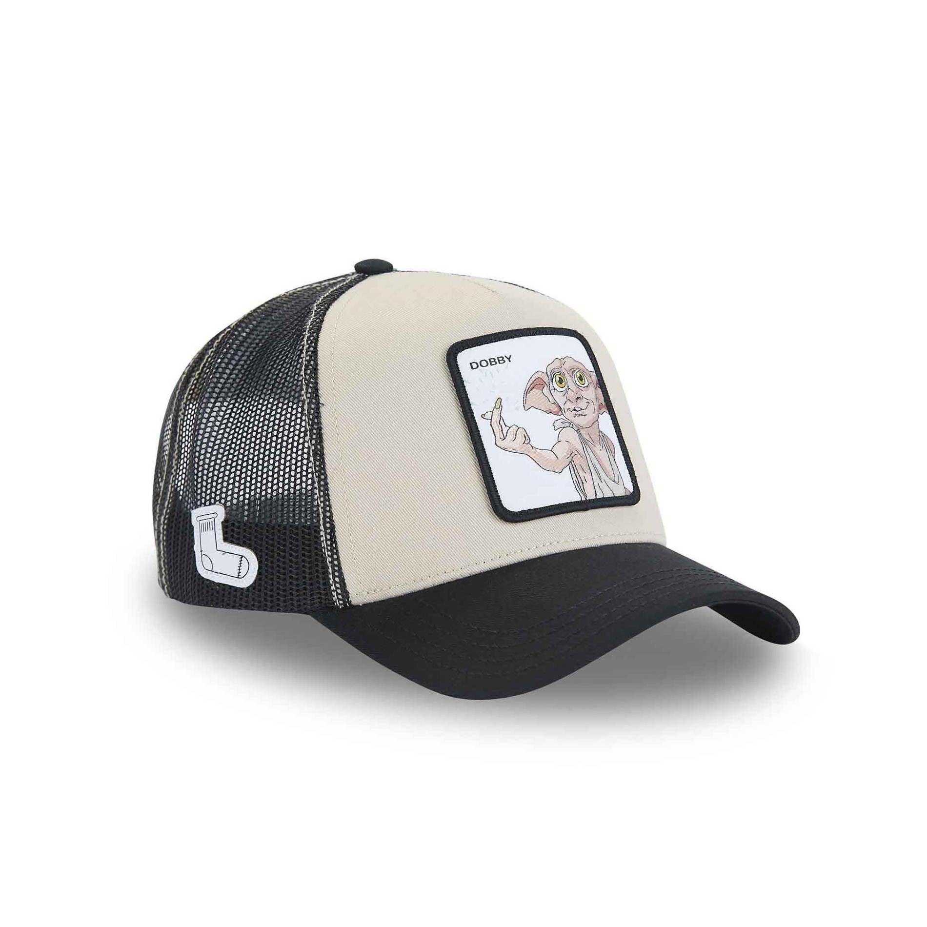 Beige keps med Dobby patch på framsidan och ett nät på baksidan.