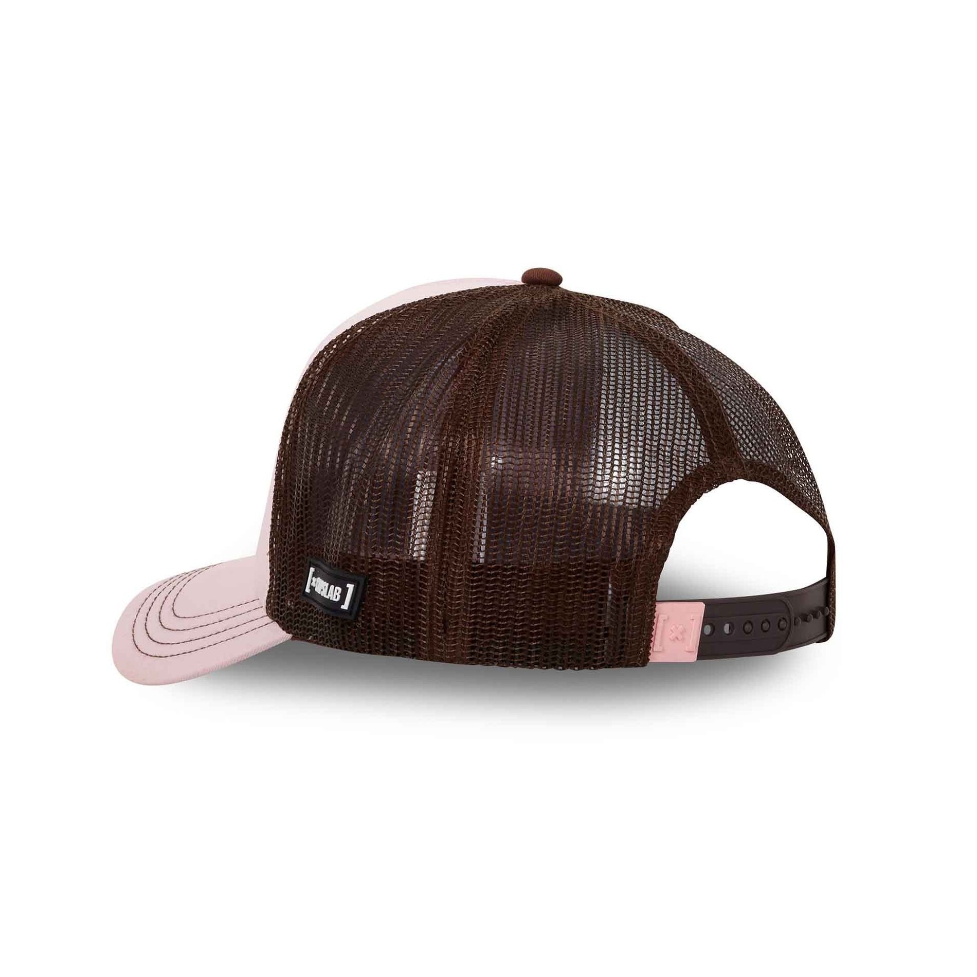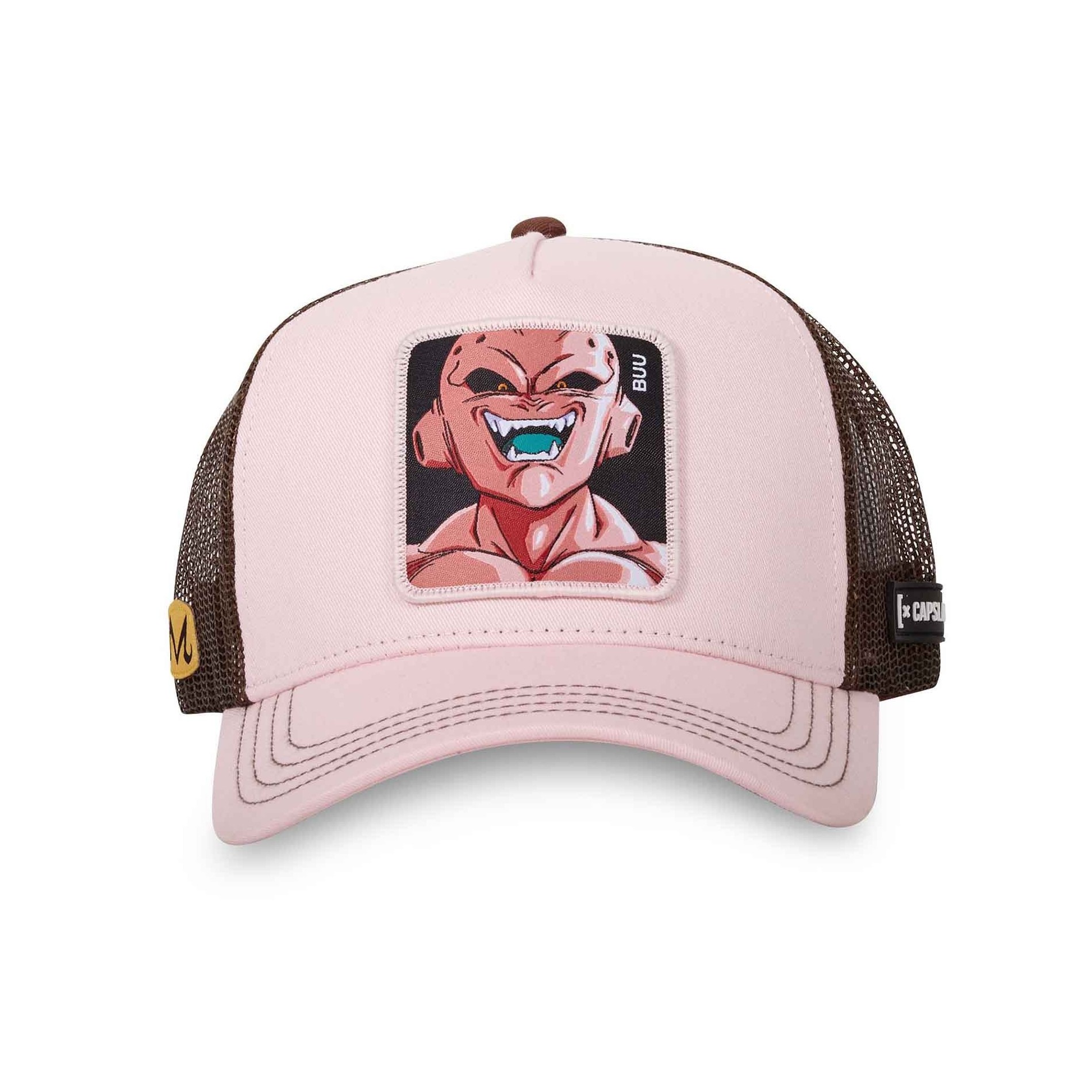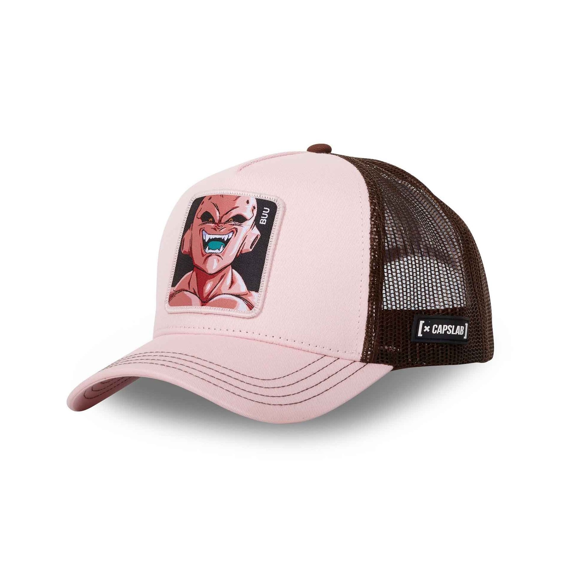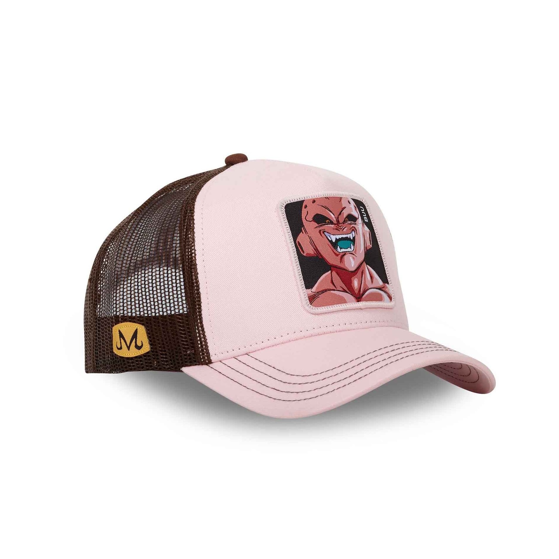 Rosa keps med Buu Majin-patch på framsidan och brun mesh på baksidan.