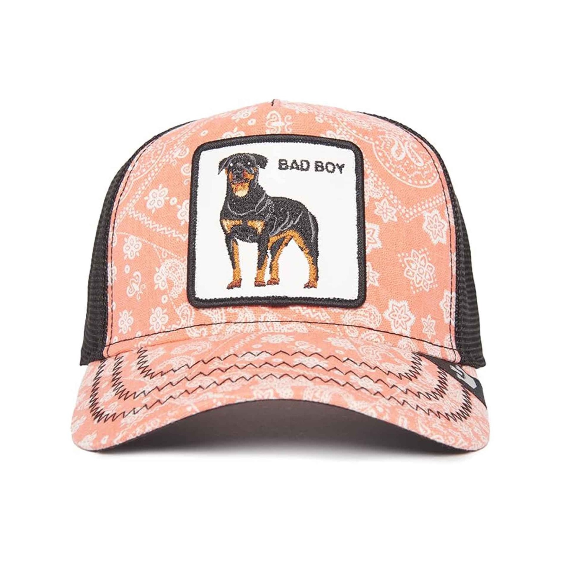 Goorin Bros Keps "Bad Boy" i paisleymönstrat tyg för dam och herr. Curved visor cap med svettband i frotté, Dog patch fram och mesh bak med snapbackjustering. 60% Polyester, 28% Rayon, 12% Linne