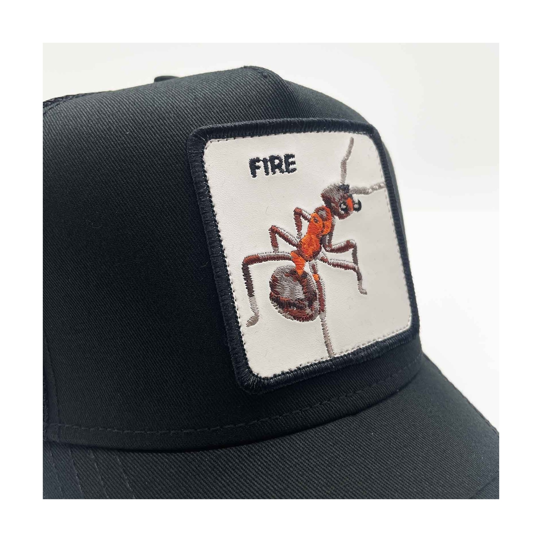Konstläderplatta broderad med en FURMY och texten"FIRE" på framsidan, flexibel mesh på baksidan.