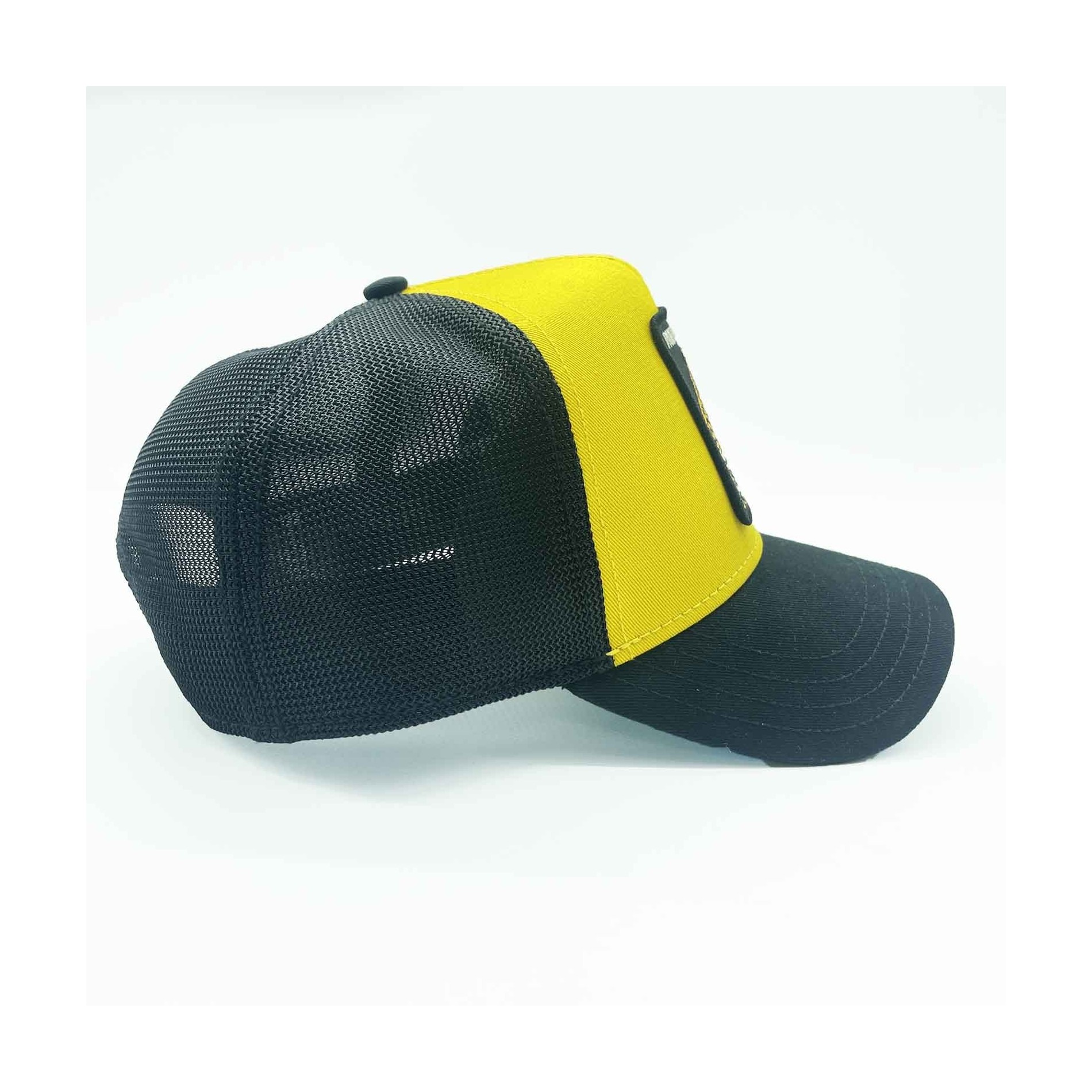 Logoetikett Goorin Bros på gult visir.