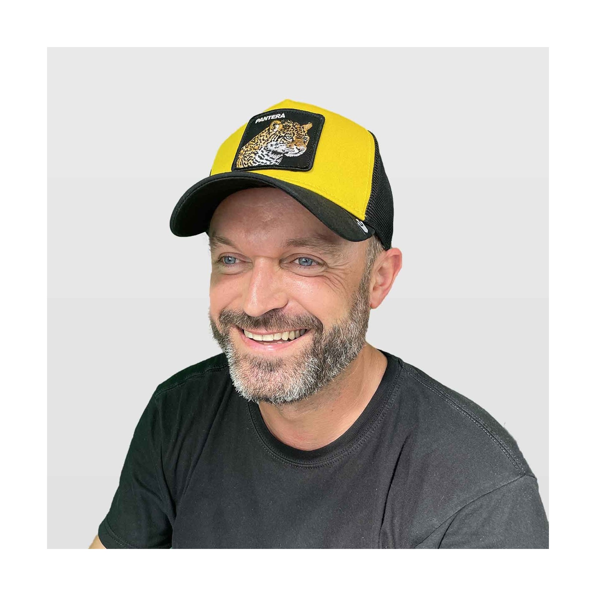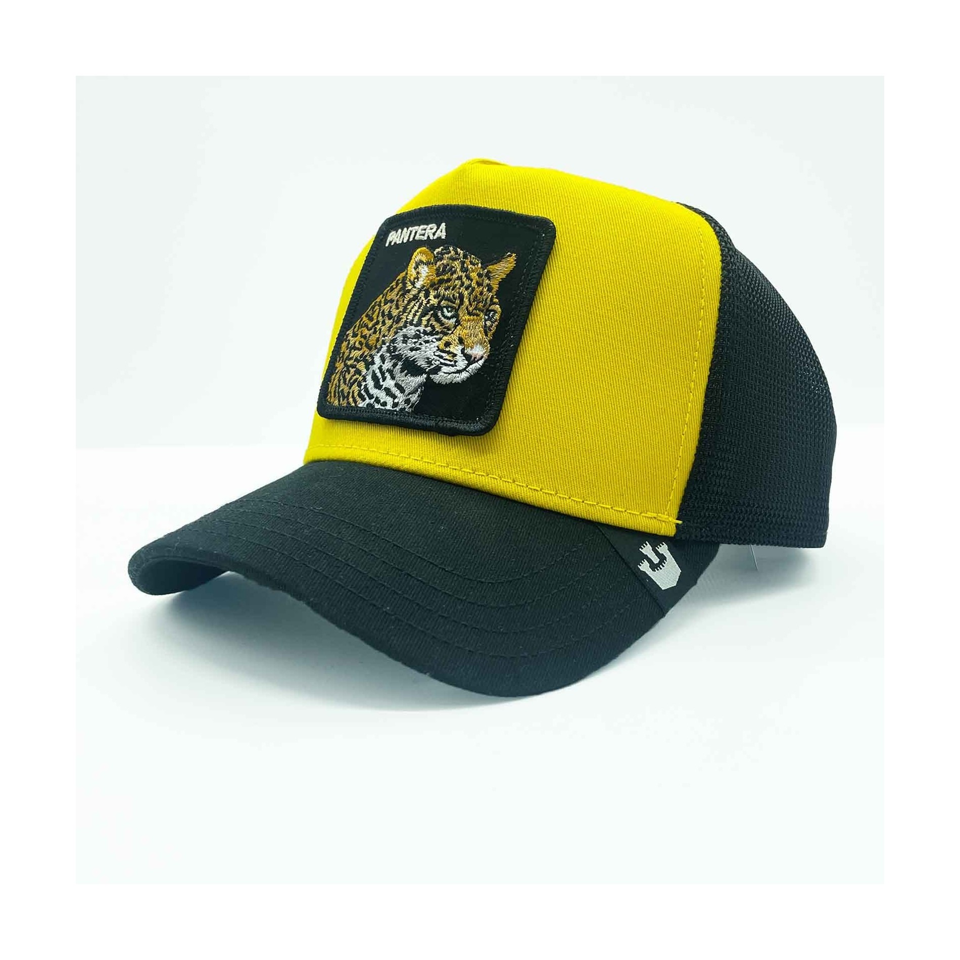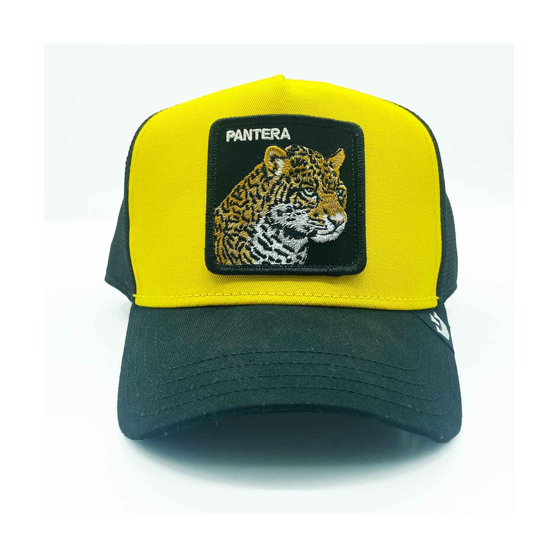 Goorin Bros Herr- och damkeps LEOPARD "PANTERA" broderad patch, böjd skärm, svettband i frotté, mesh baktill med snapbackjustering. 57% Polyester 43% Bomull