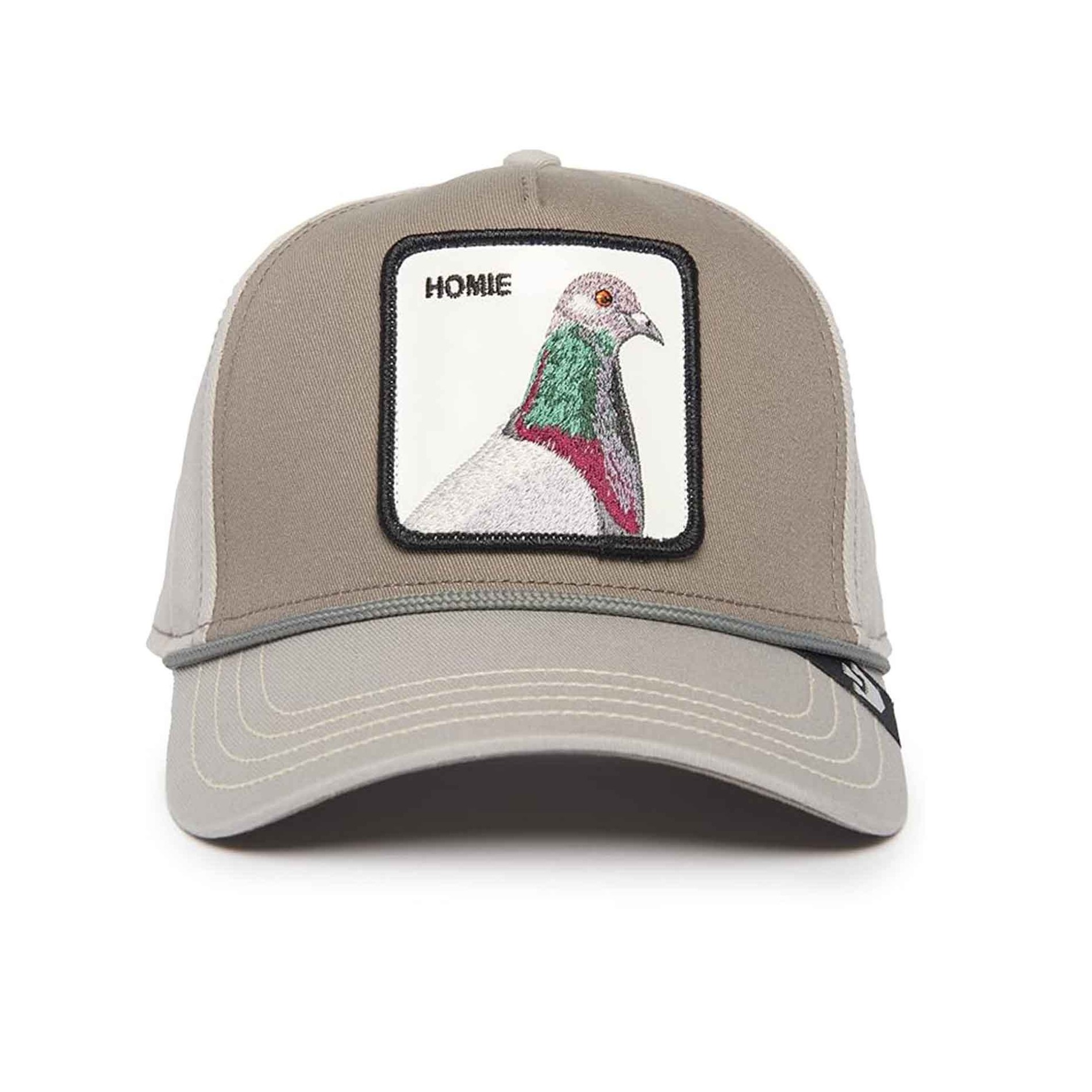 Goorin Bros Kepsen PIGEON patchbroderi "HOMIE" för män och kvinnor. Rundad visirkeps, läderimitation på framsidan, Pigeon-brodyr, Snapback-justering. 100% bomull