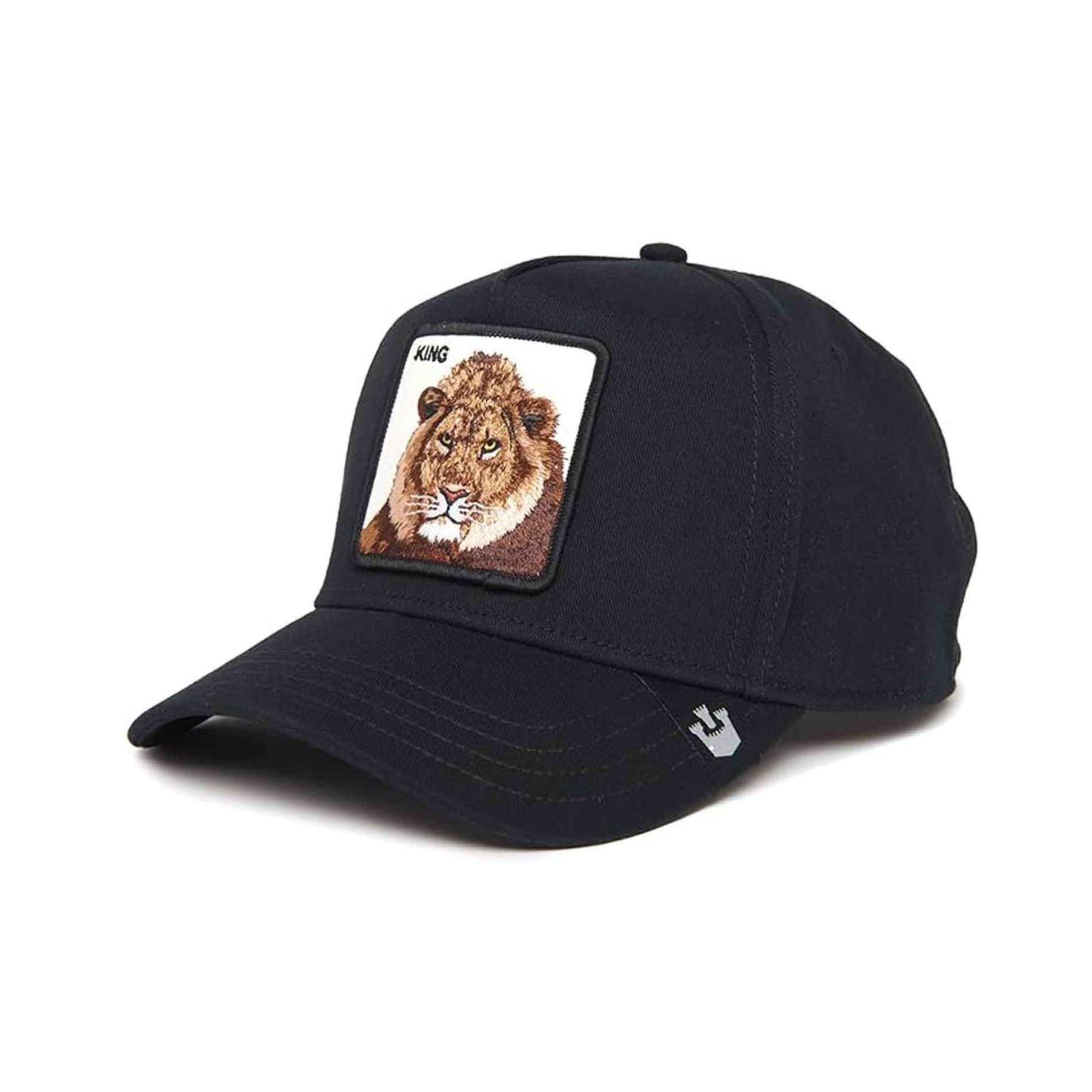 Goorin Bros Keps med LION-brodyr "KING" för män och kvinnor. Kepsen har böjt visir, frontpatch i läderimitation med LION-brodyr, snapback-justering. 100% bomull