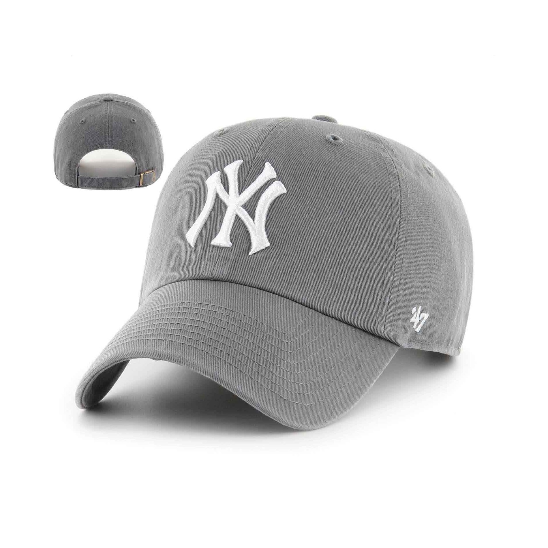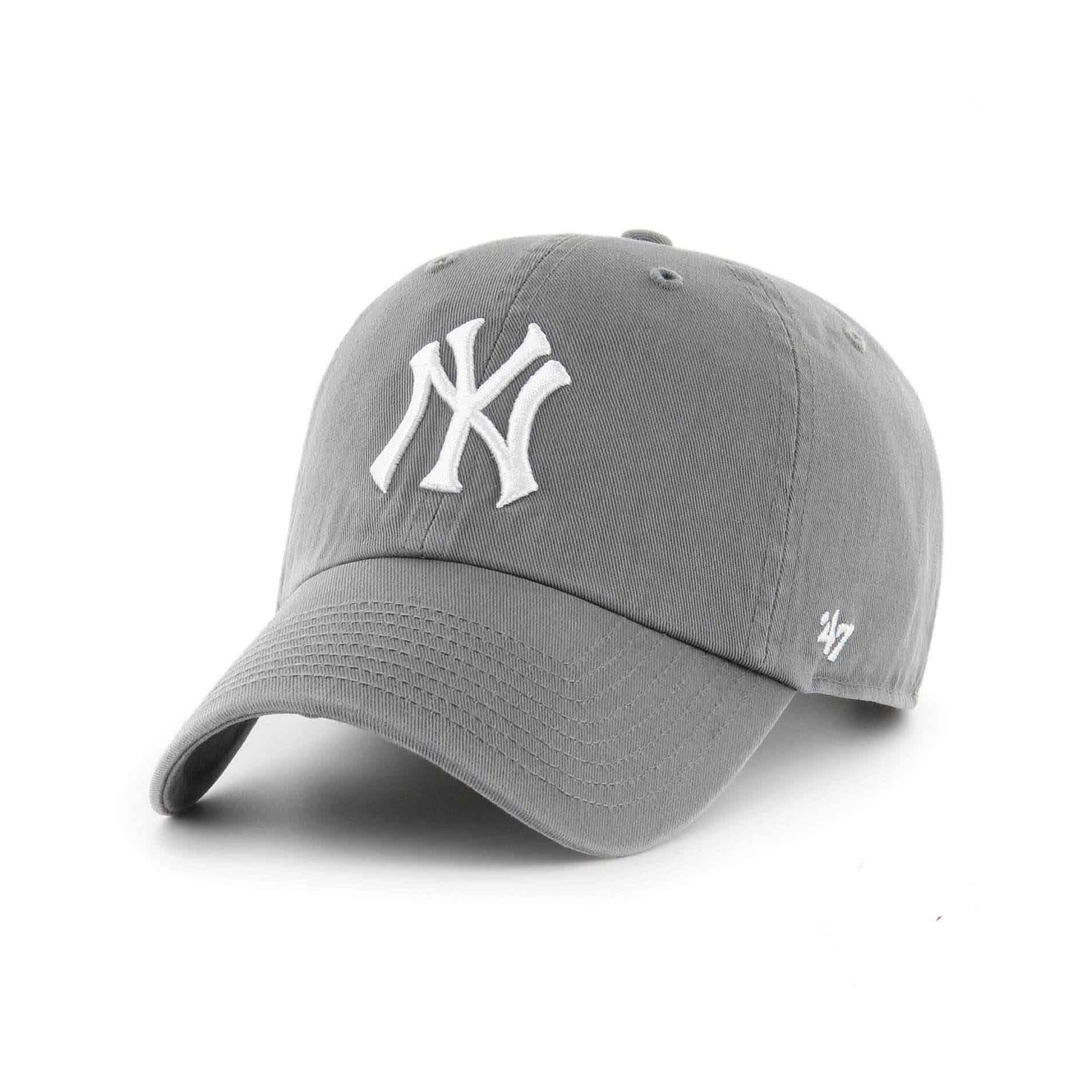 Den grå '47 New York Yankees'Clean Up' kepsen är en trendig basebollkeps med en mjuk, böjd avslappnad passform, präglad framsida och '47-brodyr på sidan.