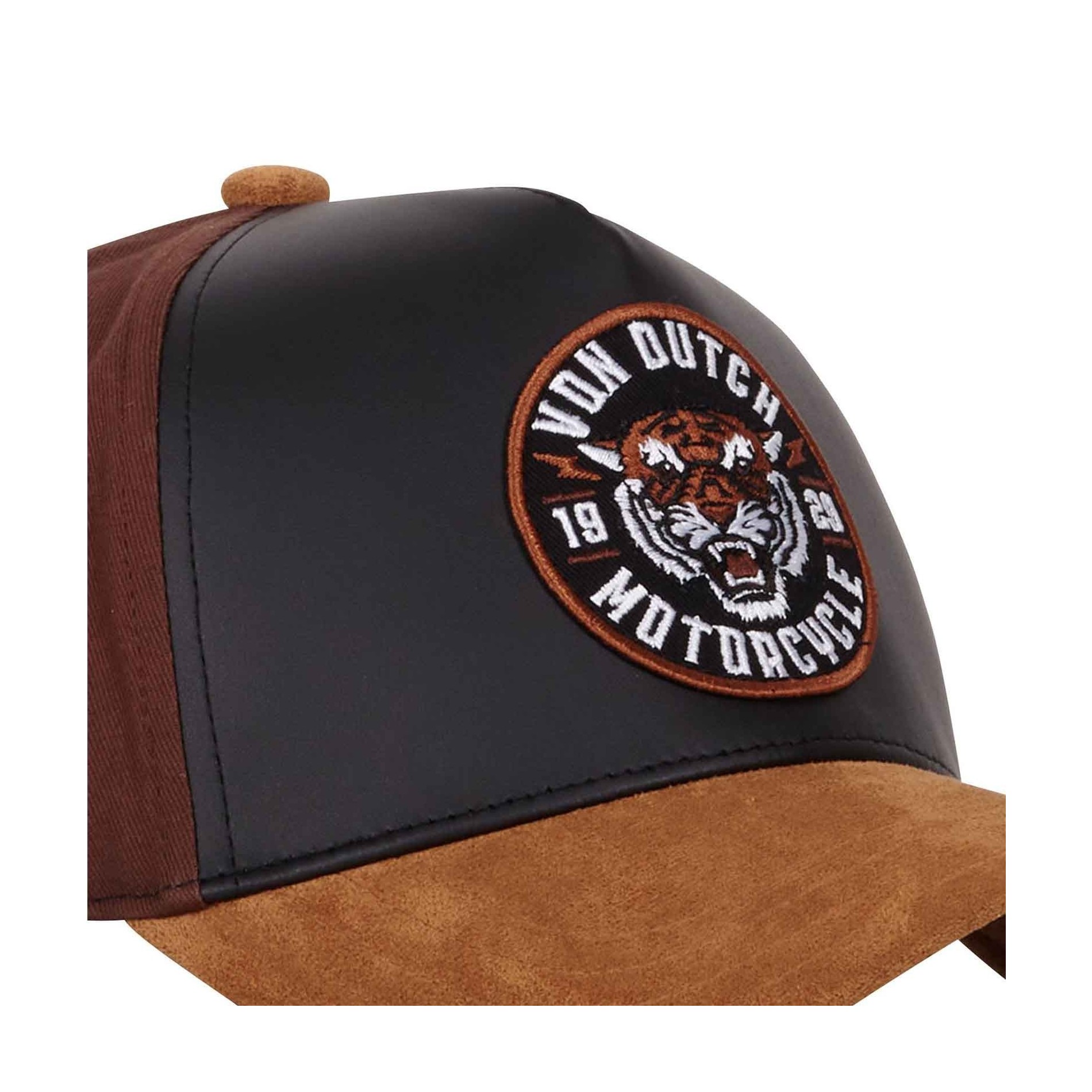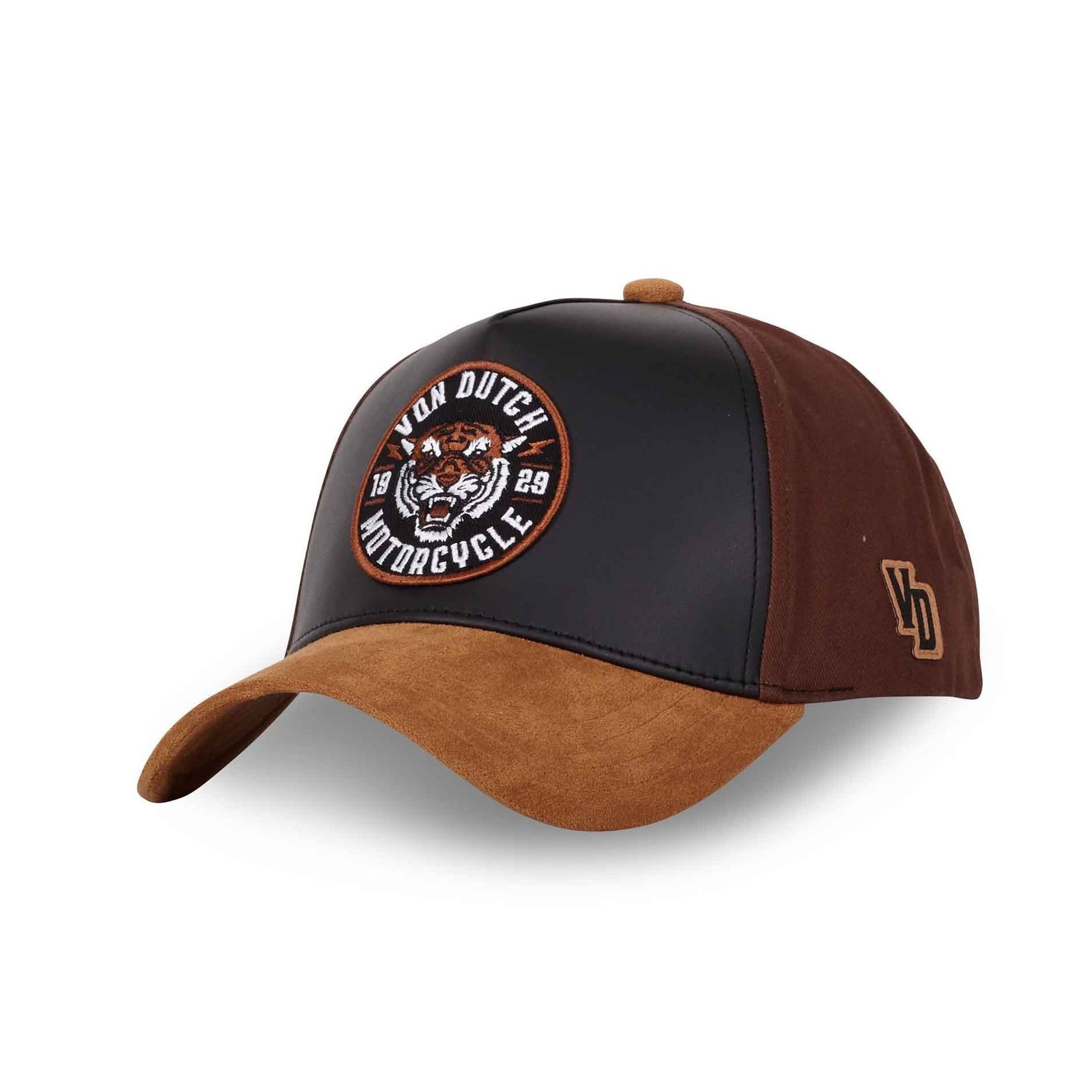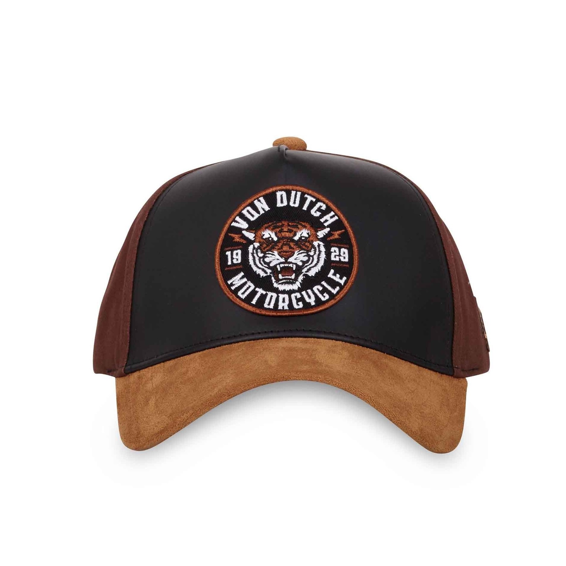 Von DutchCap by , Vintage kollektion Basebollkeps för män eller kvinnor med Tiger patch, mocka visir och imiterat läder framtill. 50% Bomull 50% Polyester