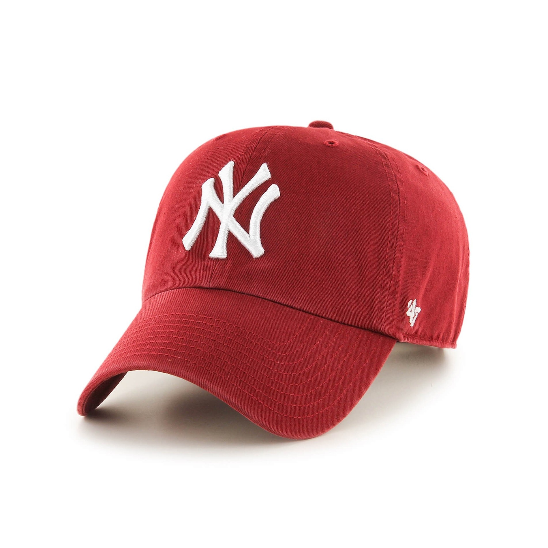 Red '47"Clean Up" New York Yankees keps är en trendig basebollkeps med en mjuk, böjd avslappnad passform, präglad front och '47 sidobrodyr.