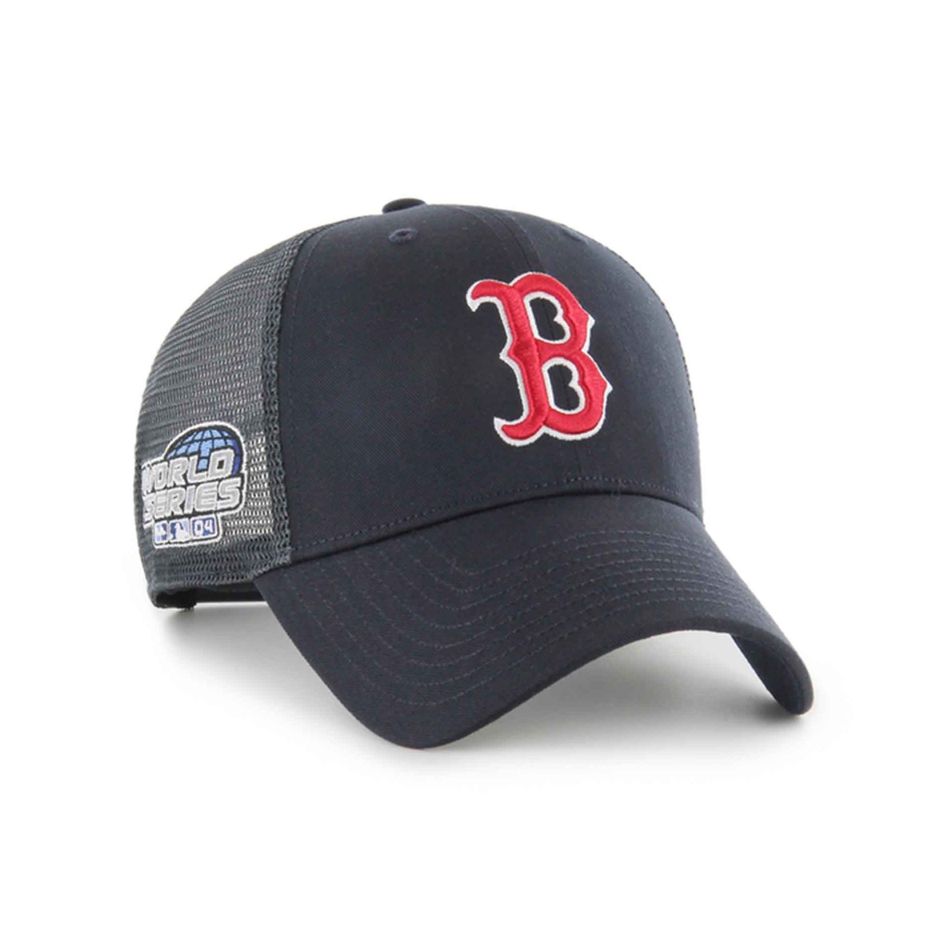 Branson Sure Shot '47 MVP Boston Red Sox kepsen är en strukturerad, böjd Trucker basebollkeps med upphöjt broderi på framsidan och World Series '47 broderi på sidan.