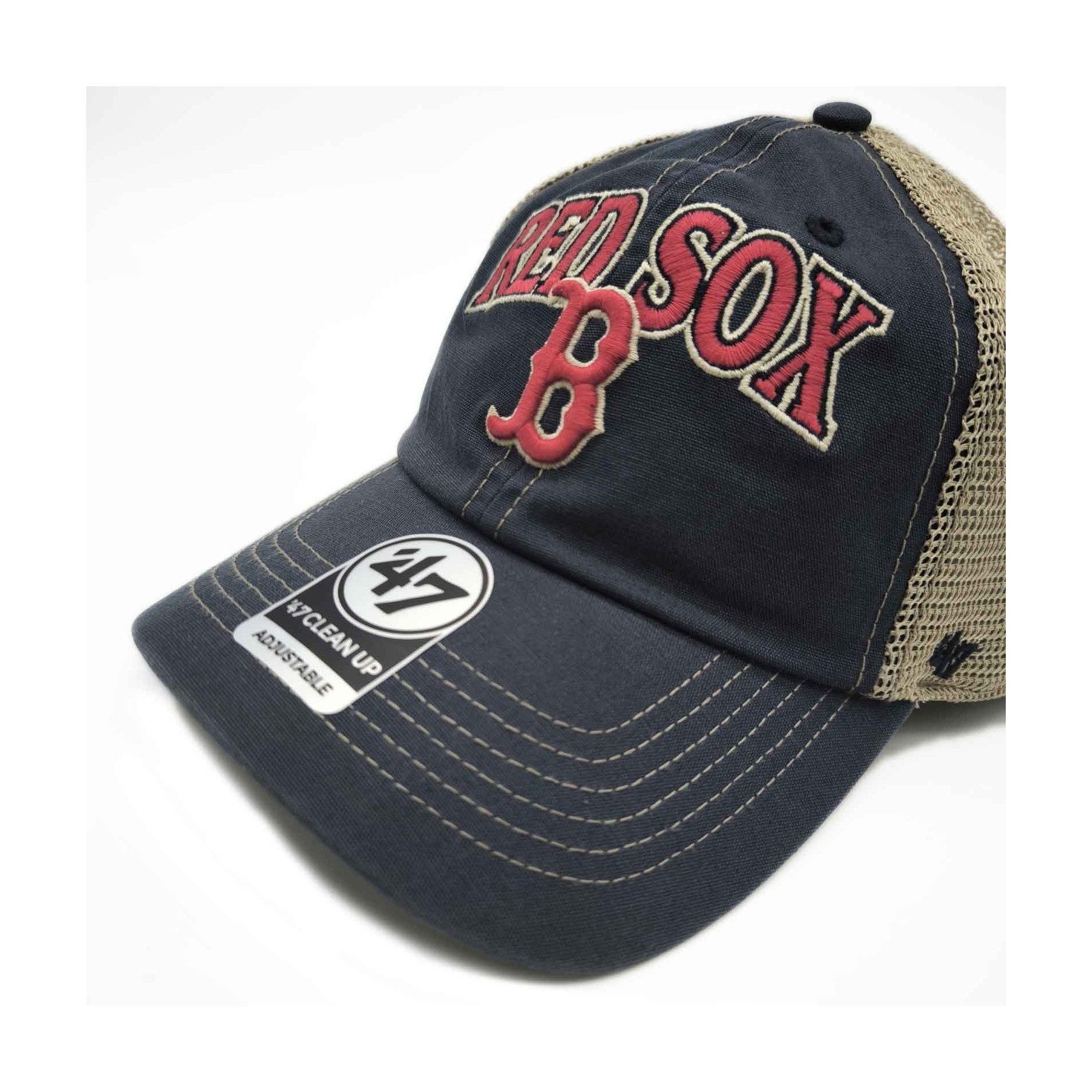 Boston Red Sox '47 Tuscaloosa Clean up Cap är en mjuk basebollkeps i mesh med upphöjt broderi på framsidan och '47-broderi på sidan. Snapback-stängning baktill. Nervöst vintage-tyg.
