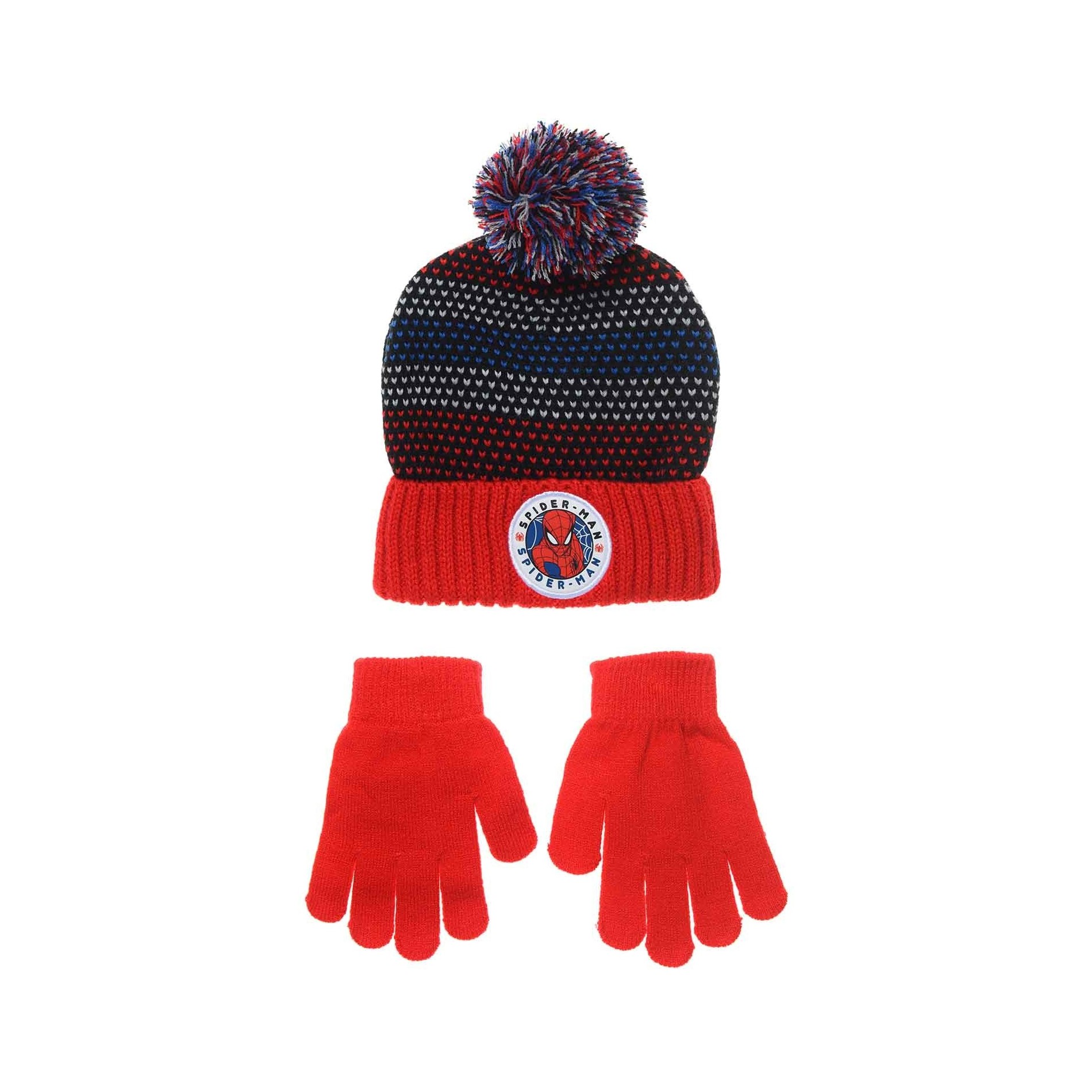Mössa och handskar Spiderman Marvel i akryl, med mössa med pom-pom med figuren i rött eller grått (storlek 52-54). Matchande handskar i rött eller marinblått, perfekt för att tackla vintern med stil.