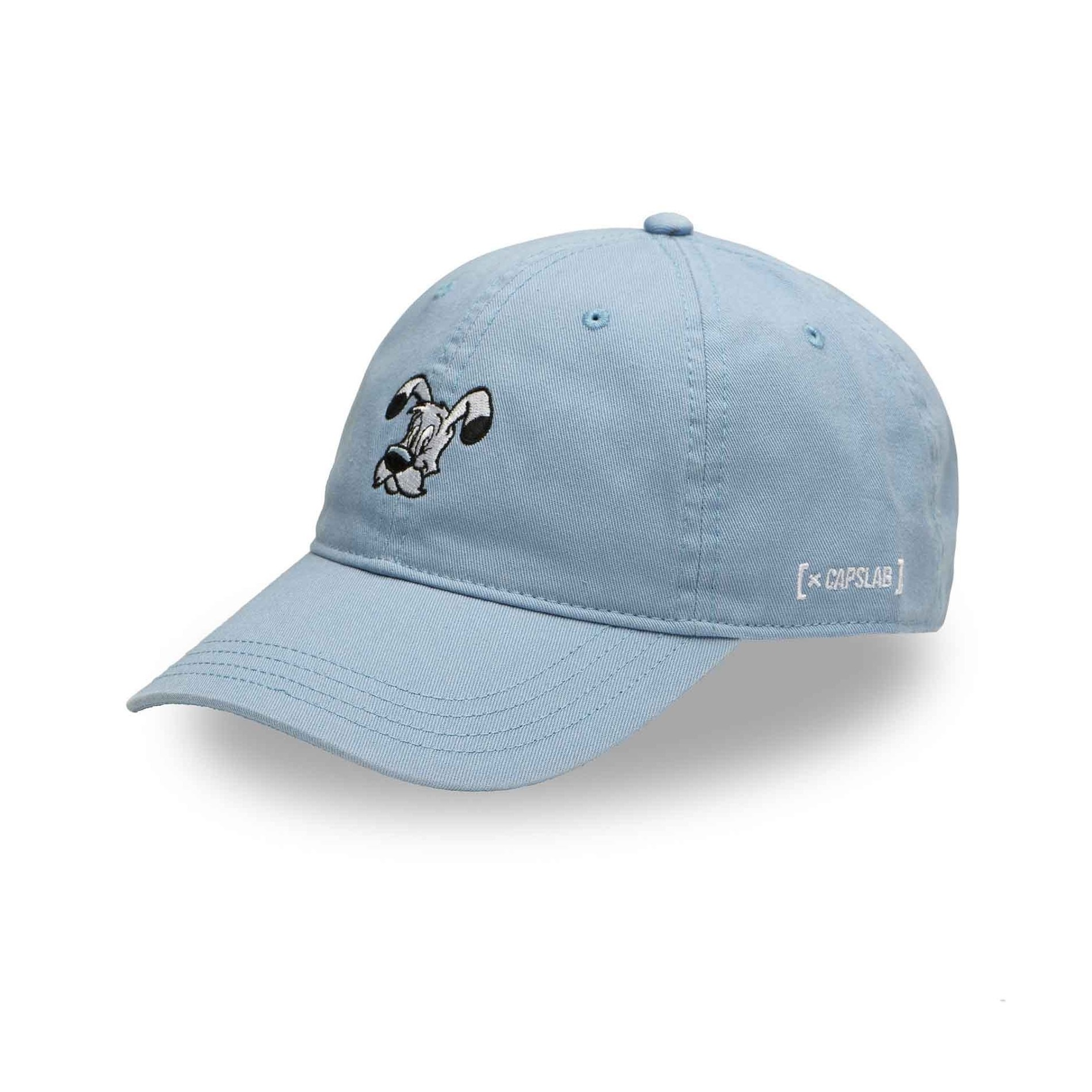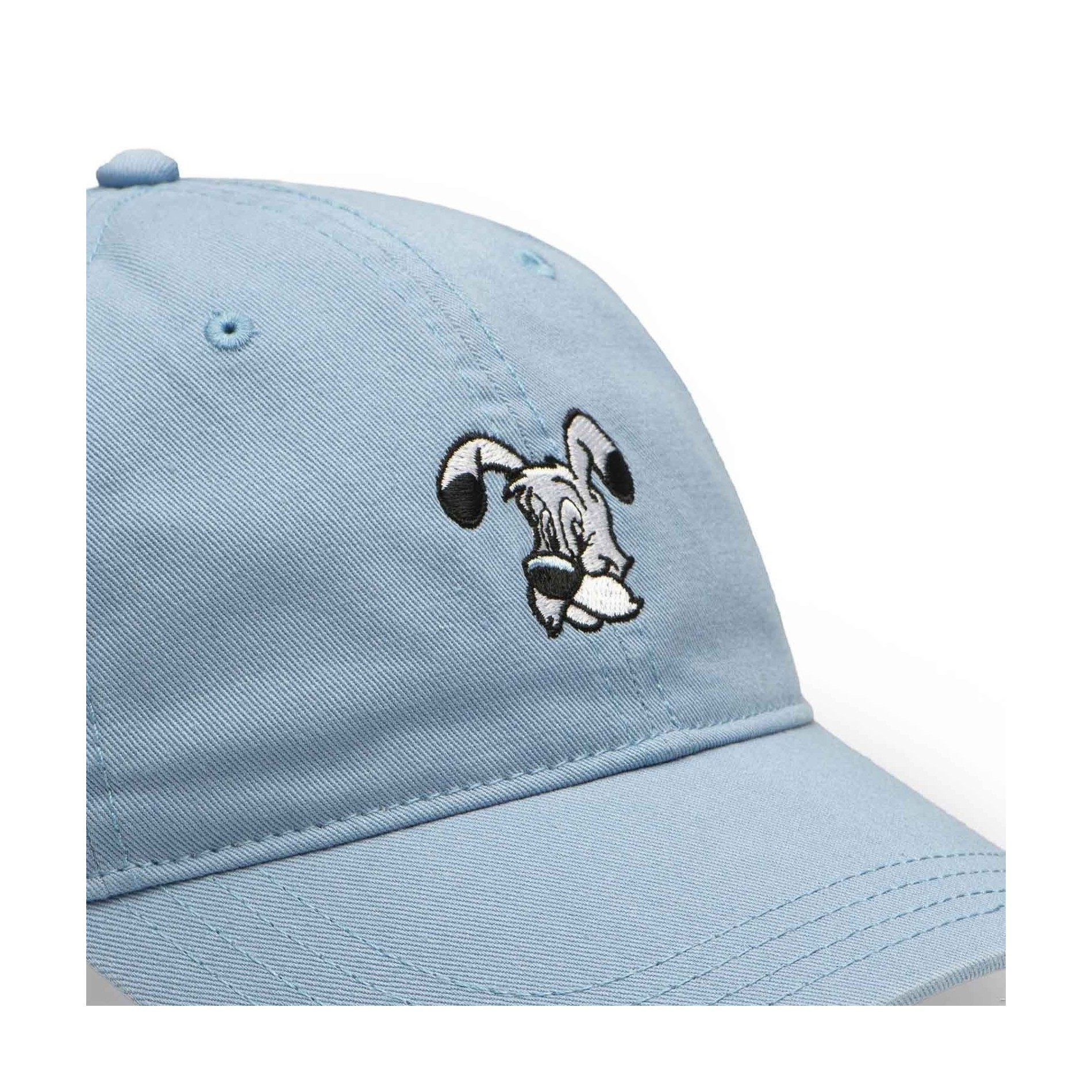 Med sin klassiska basebollskärning och himmelsblå färg är den här kepsen lika mjuk som Dogmatix ögon. Obelix berömda hund är broderad på framsidan och kommer att få vem som helst att le, samtidigt som den ger din outfit en touch av originalitet.