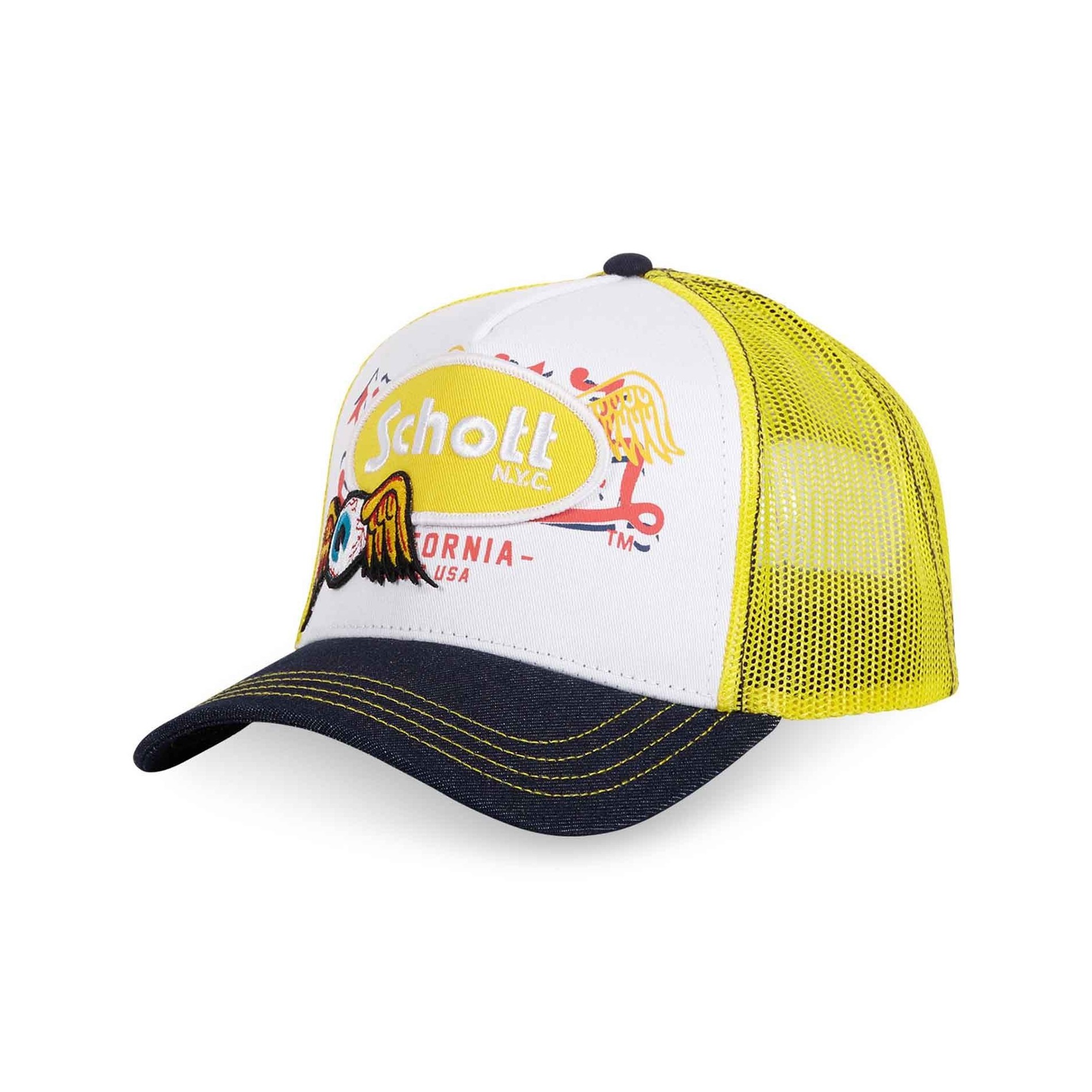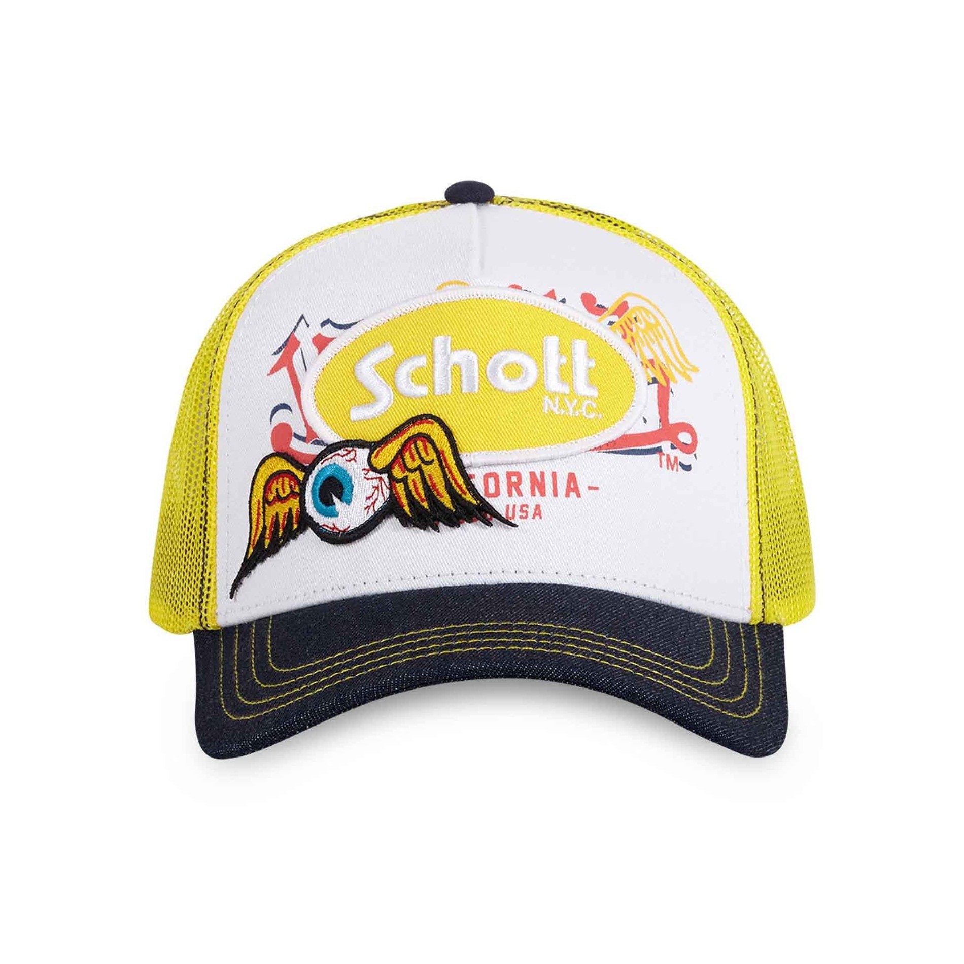 Den är designad för att sticka ut från mängden och kombinerar komfort och originalitet tack vare ventilerande mesh, denimskärm och justerbar snapback. Hela looken förstärks av ett starkt visuellt uttryck som kombinerar Von Dutch:s old school-tatueringsuniversum med Schotts autentiska arbetskläder.