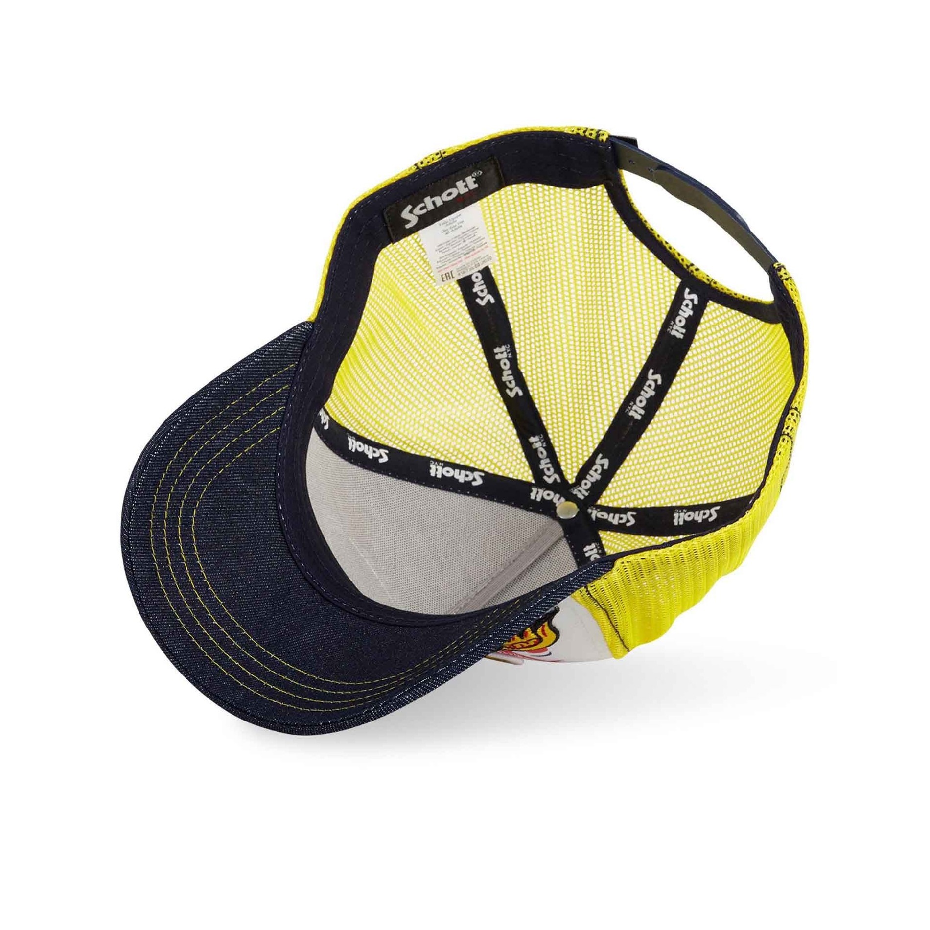 Få en djärv, livfull look med "Patch" Trucker Cap, resultatet av ett explosivt samarbete mellan Von Dutch och Schott N.Y.C.. Den här modellen kombinerar en visir i rå denim med ljusgul mesh och färgglada broderade lappar för en självsäker stil som är en blandning av amerikansk vintage och udda streetwear. En unik accessoar, rolig och full av personlighet.