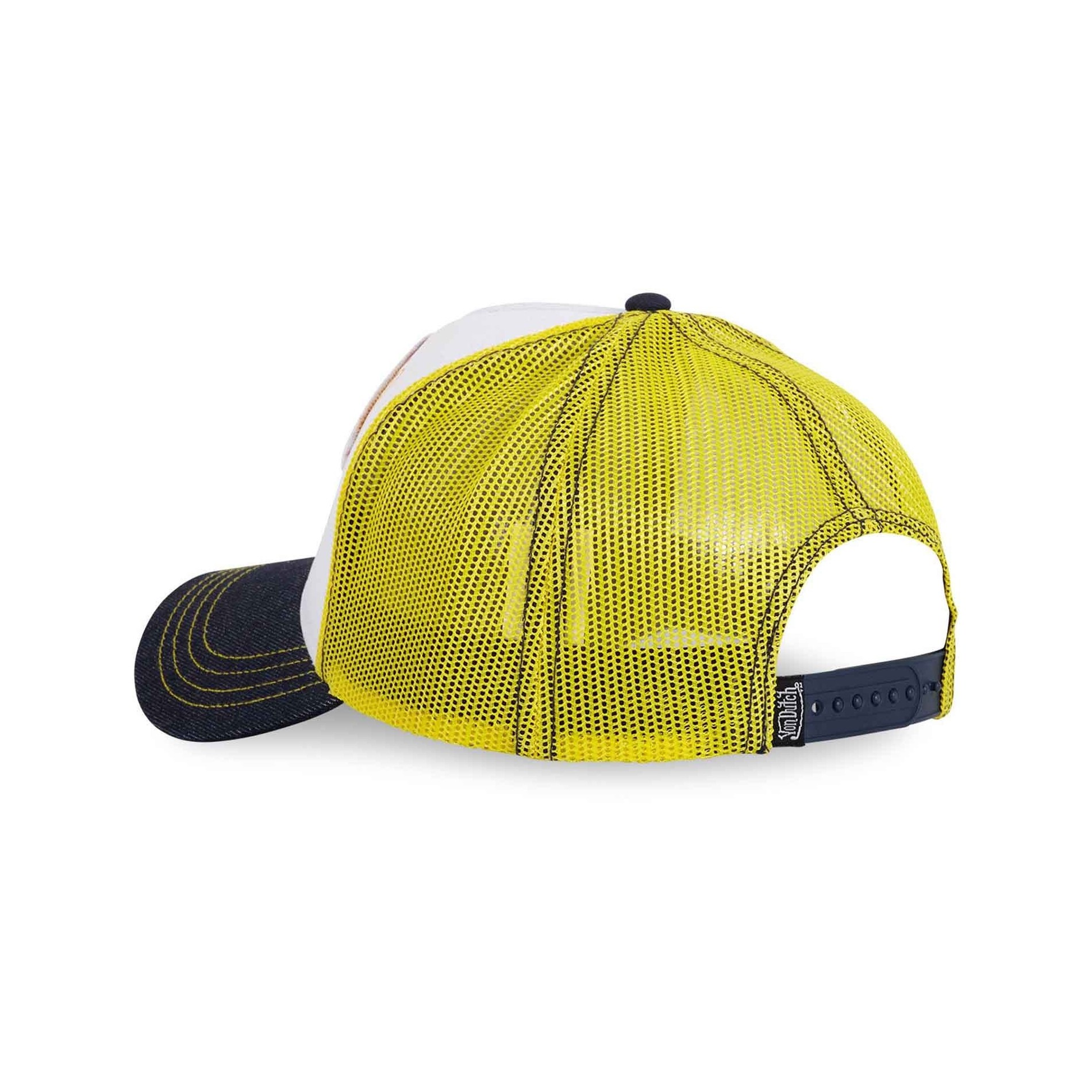 Färg: Vit front, visir i rå denim, fluorescerande gult nät, flerfärgade detaljer.