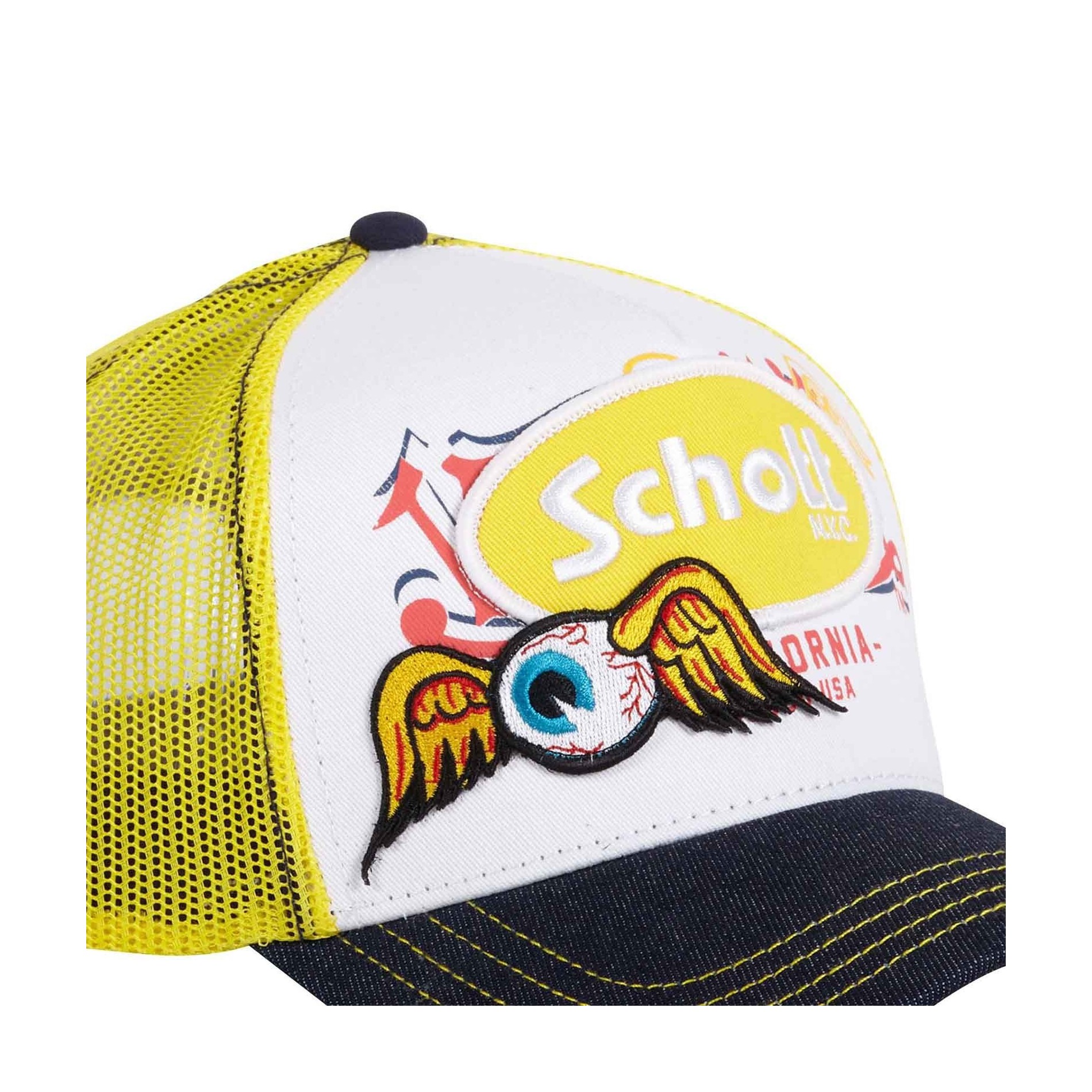Sätt färg på din outfit med "Patch" Trucker Cap, en originalkreation från Von Dutch x Schott N.Y.C. som återuppfinner koderna för urban stil. Med en kombination av rå denim, ljusgul mesh och broderade lappar inspirerade av kaliforniska bikers förkroppsligar denna keps den fria och rebelliska andan hos de två amerikanska varumärkena.