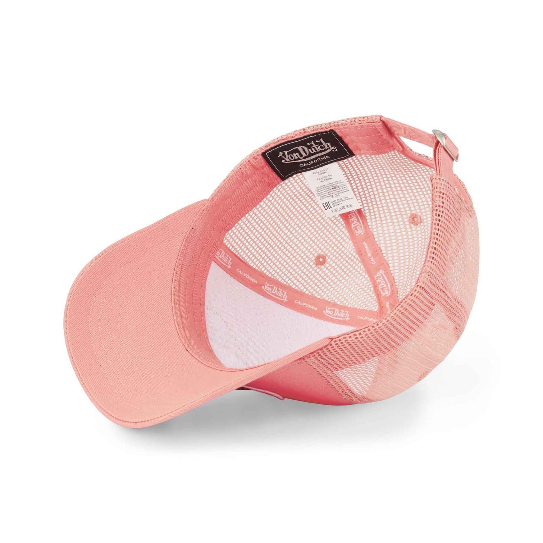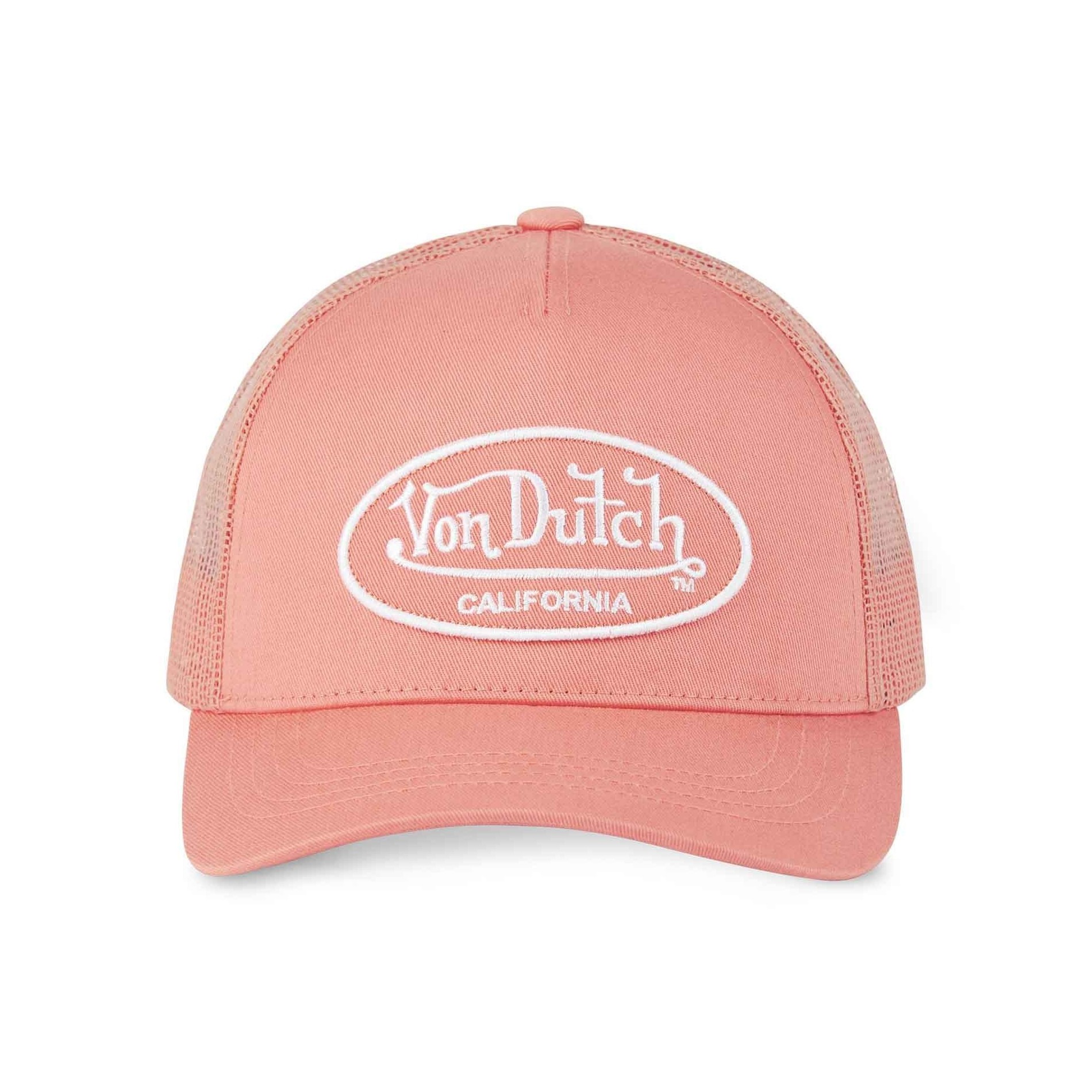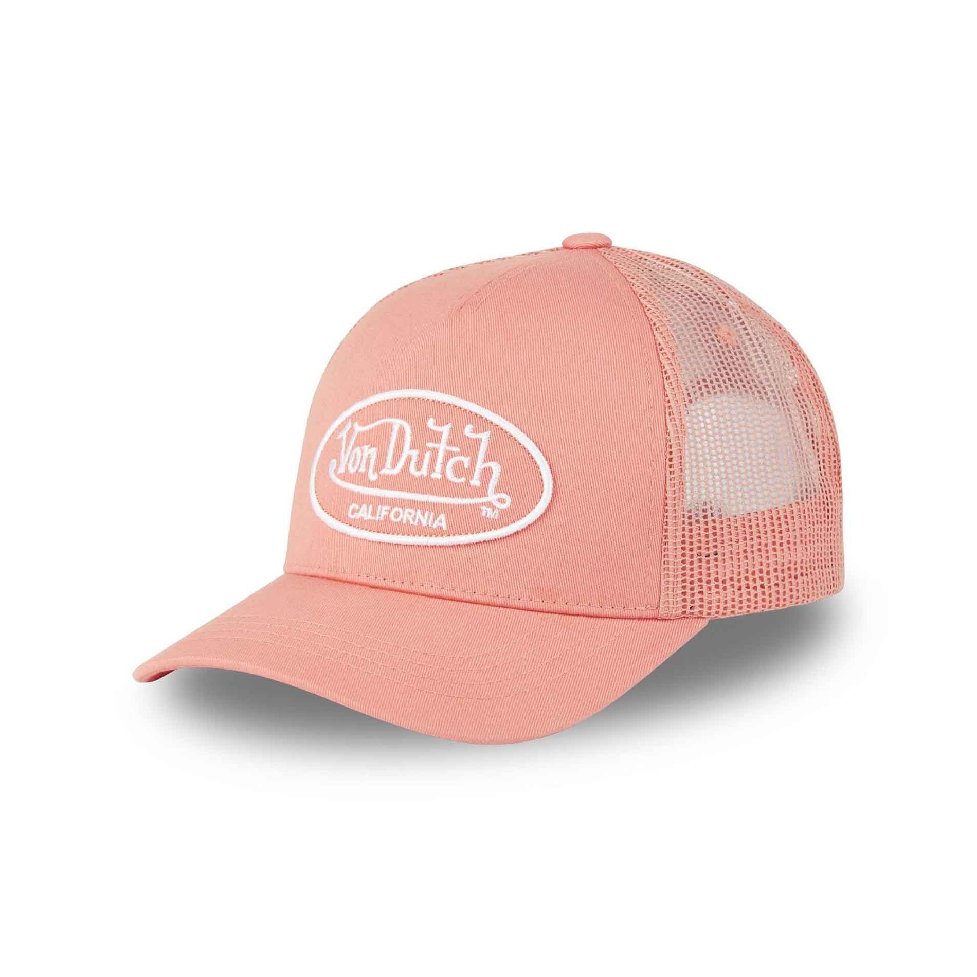 Von Dutch enfärgad keps med vit broderad logotyp, truckerstil, mesh baktill, metallspänne. Unisex. Flera färger tillgängliga.