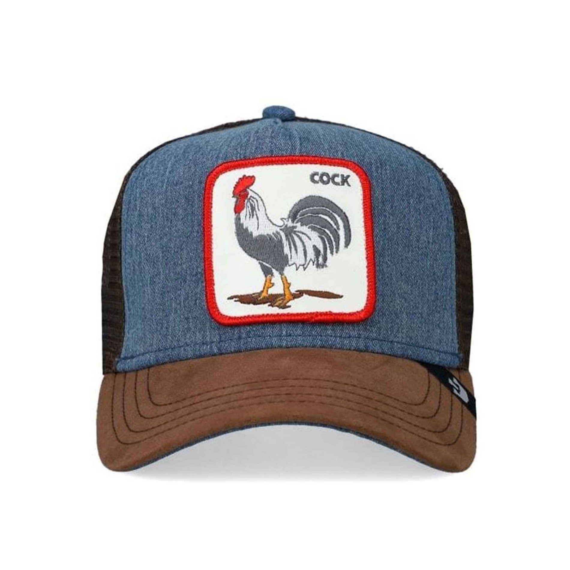 Goorin Bros Cock "The Big Strut" - Denim & Suede trucker cap är ett distinkt plagg från den berömda Animal Farm-kollektionen. Den har en premiumbroderad patch som föreställer en stolt och majestätisk tupp och speglar självförtroende och karaktär.