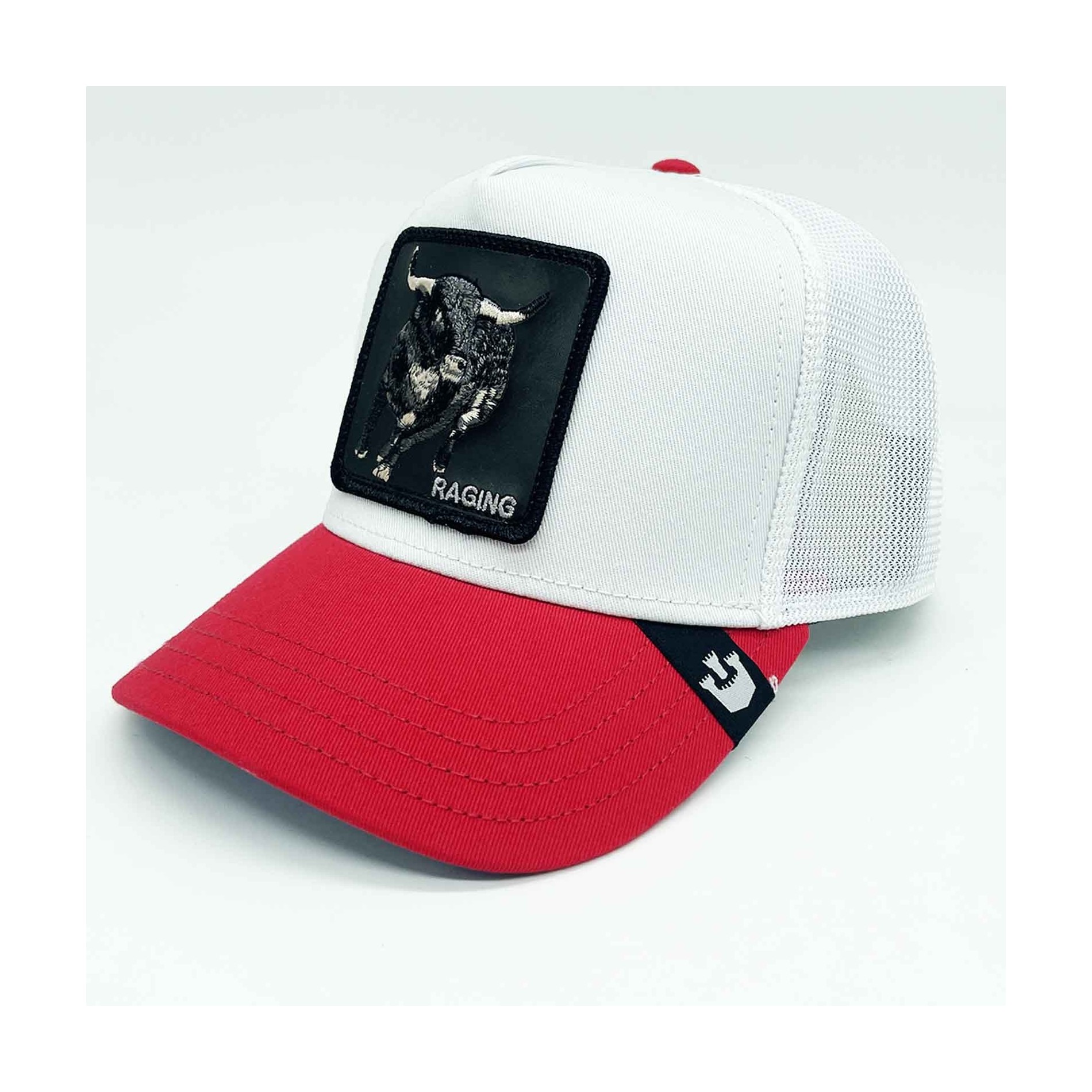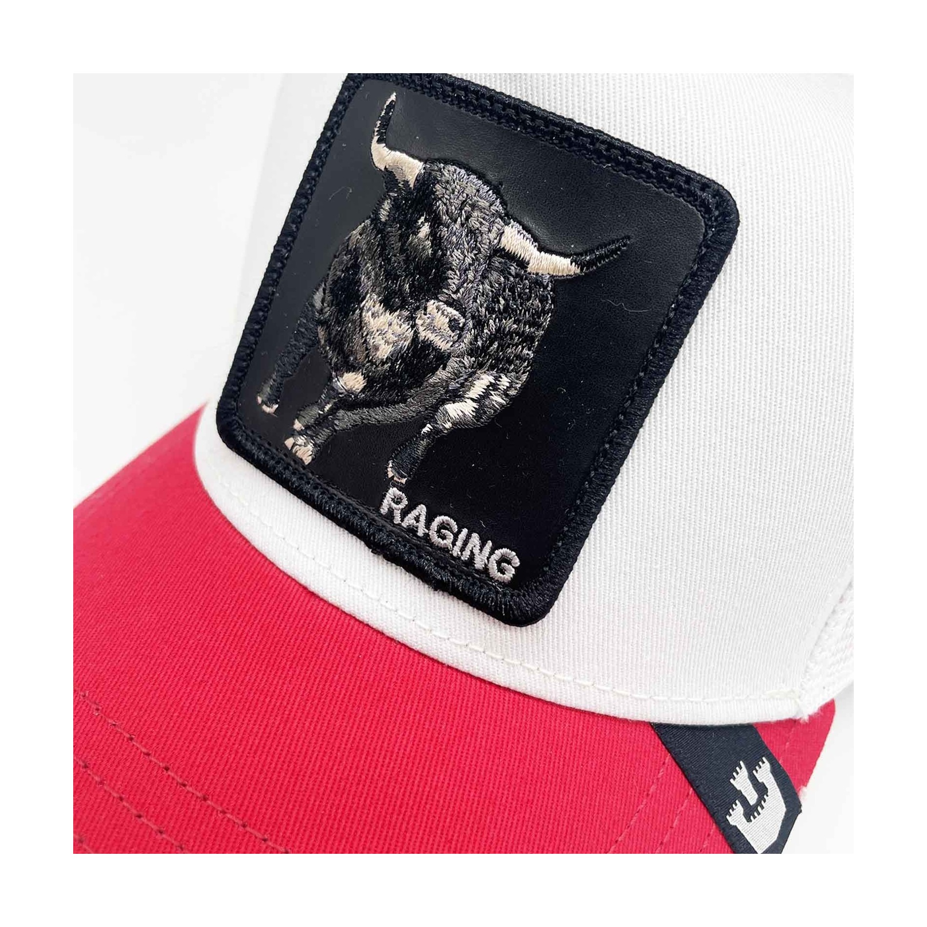 Visa upp din starka karaktär med Premium Trucker V2 "RAGING BULL" Cap signerad av Goorin Bros. Den här ikoniska modellen har en broderad patch som föreställer en tjur som laddar, en symbol för kraft och beslutsamhet. Det kontrasterande röda visiret och den vita kronan skapar en djärv, modern look.