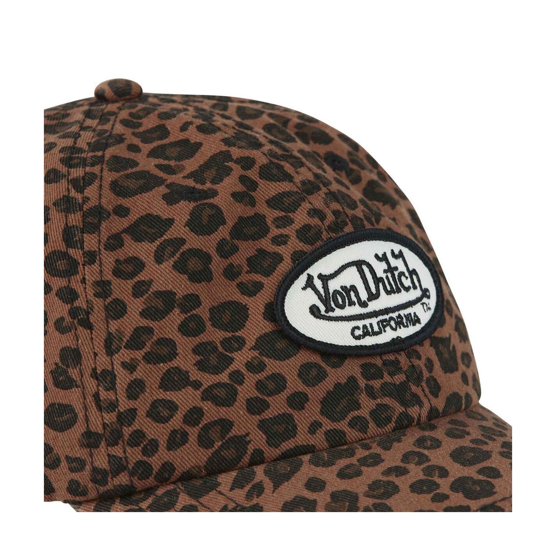 Boosta din look med Dad Cap Von Dutch med leopardmotiv. Låg profil, mjuk krona och förböjd visir för en ultrakomfortabel dad cap med signatur. Den ovala Von Dutch California-patchen ger en ikonisk touch, medan strapback-justeringen säkerställer en exakt passform. Perfekt för vardagens street- och casual chic.