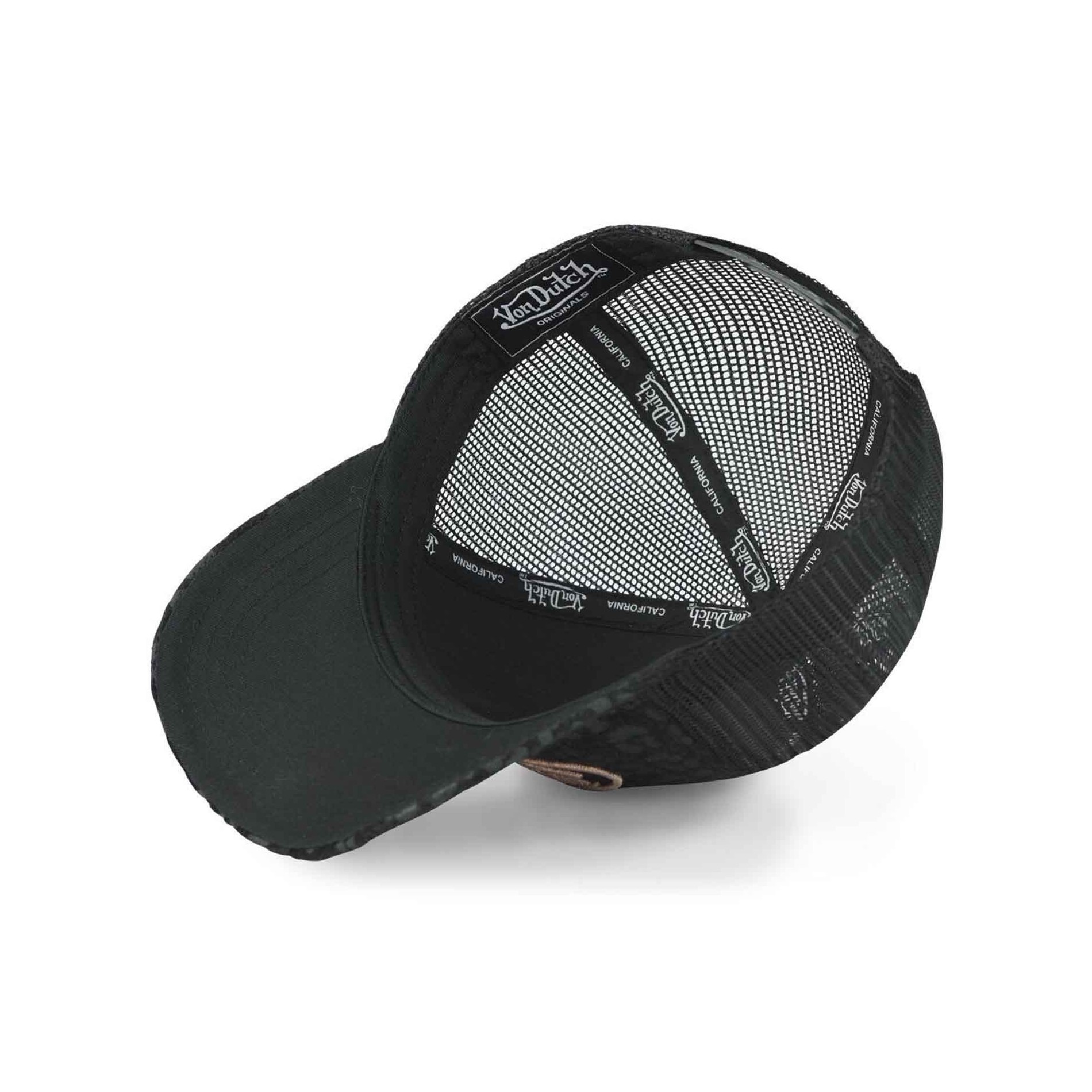 Få en glamorös, kattliknande look med Von Dutch trucker cap för damer i AOP:s leopardmotiv. Frontpanelen i texturerad fuskpäls med en glänsande effekt ger textur och fångar ljuset, medan meshbaksidan garanterar utmärkt andningsförmåga. Oval Von Dutch California-logotyp broderad i guld på framsidan, förböjd visir och snapback-fäste för perfekt passform. En street & casual chic accessoar som livar upp dina outfits.