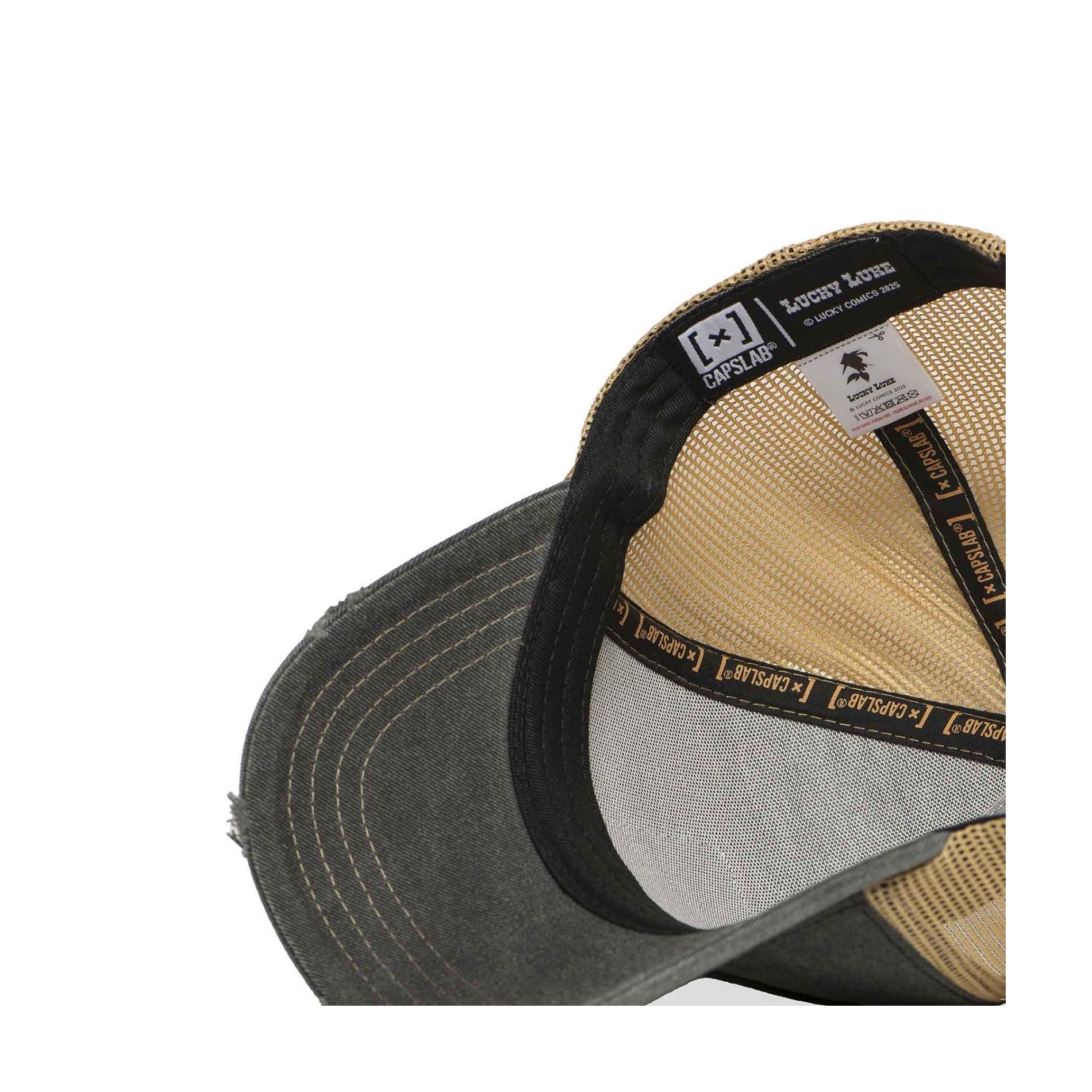 Visa din laglösa sida med "Joe Dalton " Trucker-kepsen från Capslab. Frontpanel i koksgrå canvas med broderad Joe-patch, förböjd visir i distressed-stil (mindre kontrollerat slitage) och baksida i sand mesh som andas. Signatur Capslab sidosignatur, kontrastsömmar och tematisk patch på sidan. Snapback-stängning för snabb och exakt justering. En officiellt licensierad Lucky Luke-must-have, perfekt för en vardaglig vintage western-look.