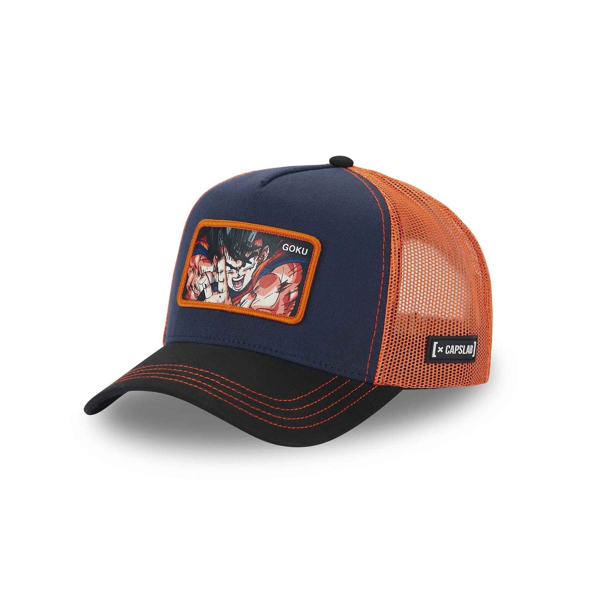 CAPSLAB Casquette Trucker Dragon Ball Z San Goku 3 Noir et Orange