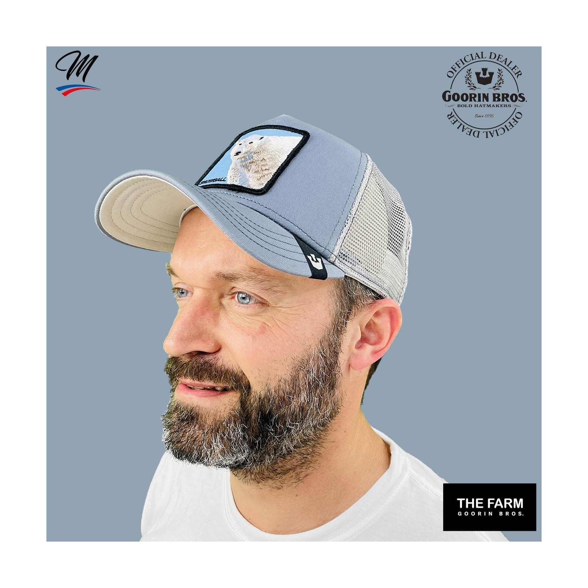 ✔ Casquette GOORIN BROS Style Baseball Trucker de différentes couleurs avec filet et un Patch brodé d'un Ours à l'avant.