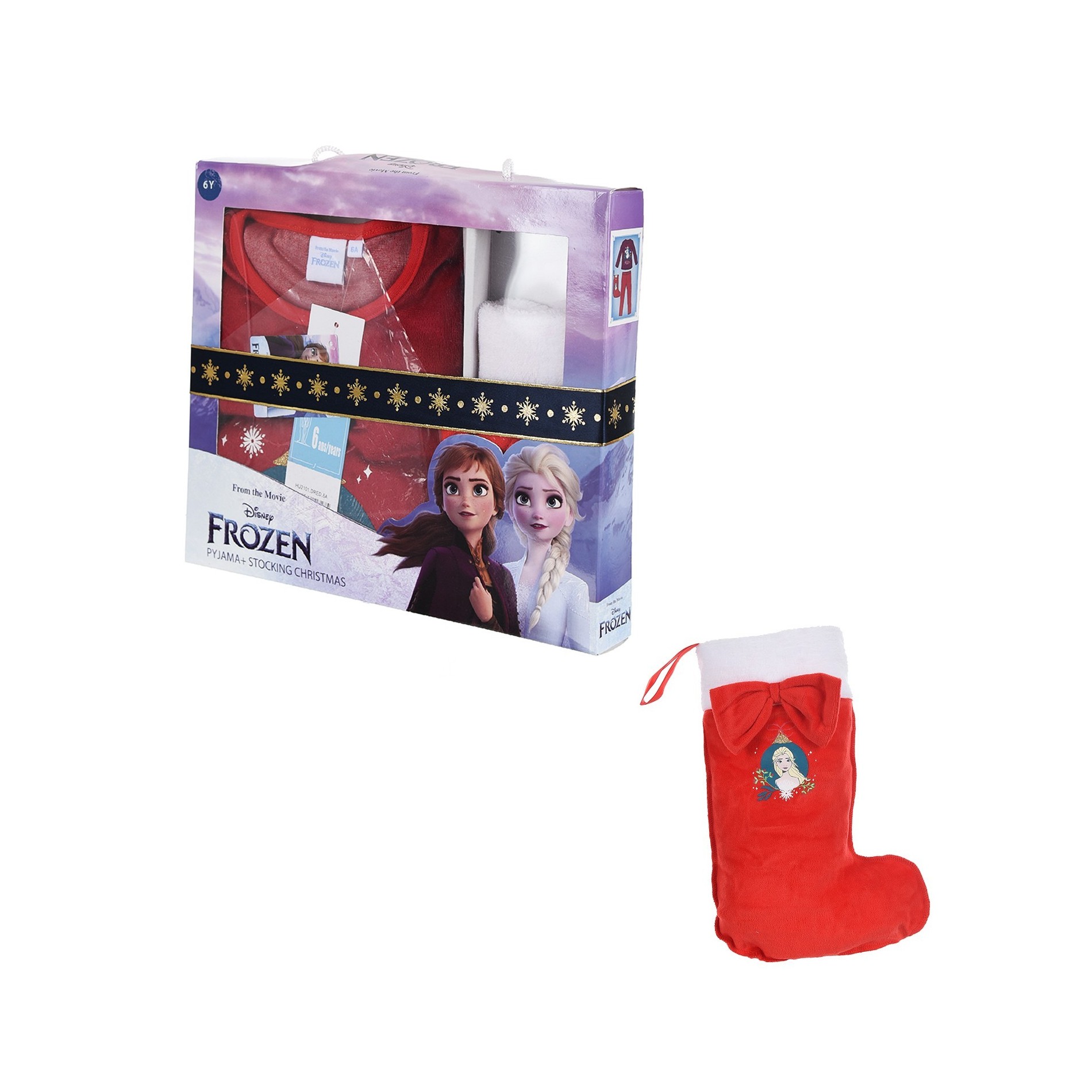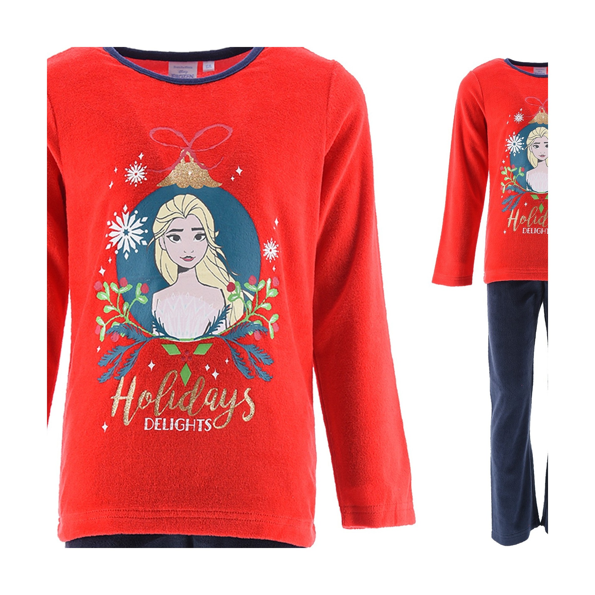 DISNEY Snow Queen "FROZEN" vinterpyjamas i velour för flickor. De är varma, mjuka och mycket bekväma, med texten "Holidays Delights". Presenteras i en presentförpackning med en polarsocke att erbjuda. 75 % bomull, 25 % polyester