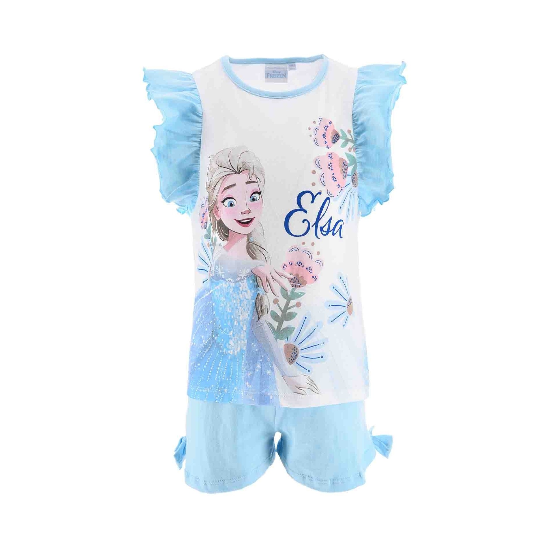 Elsa kort pyjamas 100% bomull för flickor. Blå eller lila. Lätt, mjuk och perfekt för sommaren. Finns från 4 till 8 år. Officiell Disney-licens.