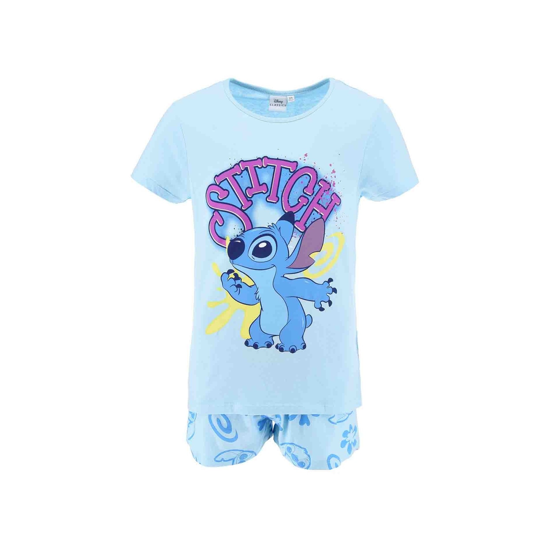 Denna 2-delade pyjamas består av en kortärmad t-shirt och matchande shorts, båda tillverkade av mjuk, andningsbar 100% bomull. Med sitt popgraffiti Stitch-mönster, roliga färger (blå eller rosa) och djärva tonårsdesign är den perfekt för flickor i åldern 10 till 16 år som gillar att sticka ut med stil.