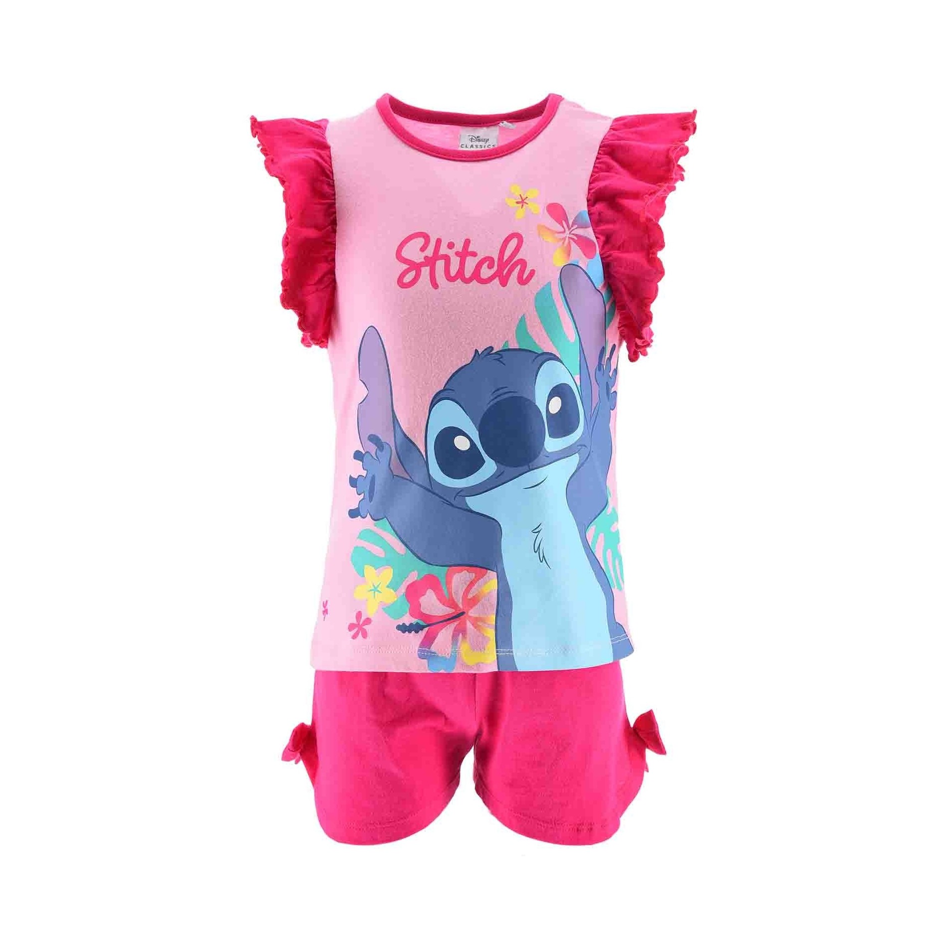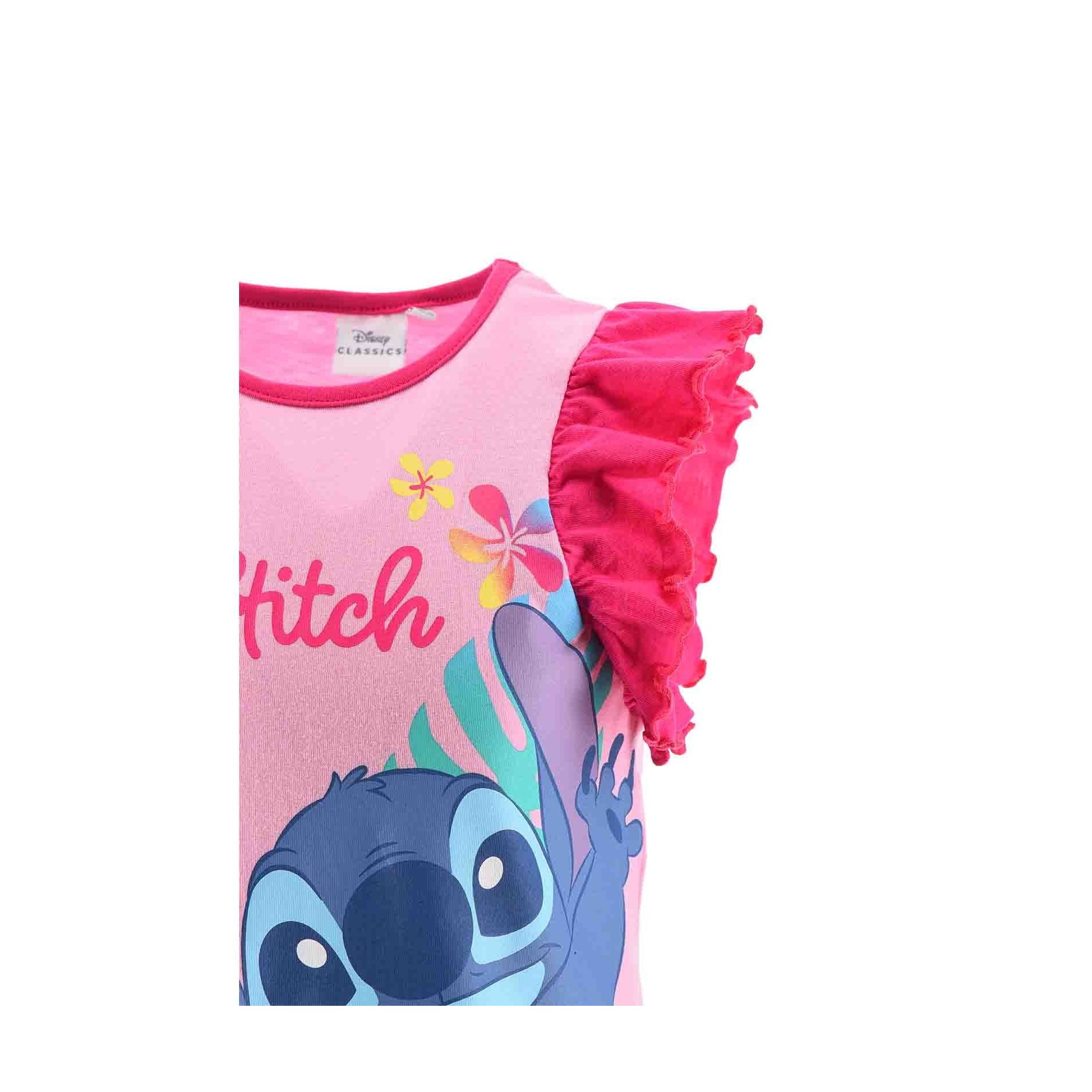 Stitch flickpyjamas med volanger och rosetter i 100% bomull, officiell Disney-licens. Storlekar 3 till 8 år. Komfort och skoj på French Market.