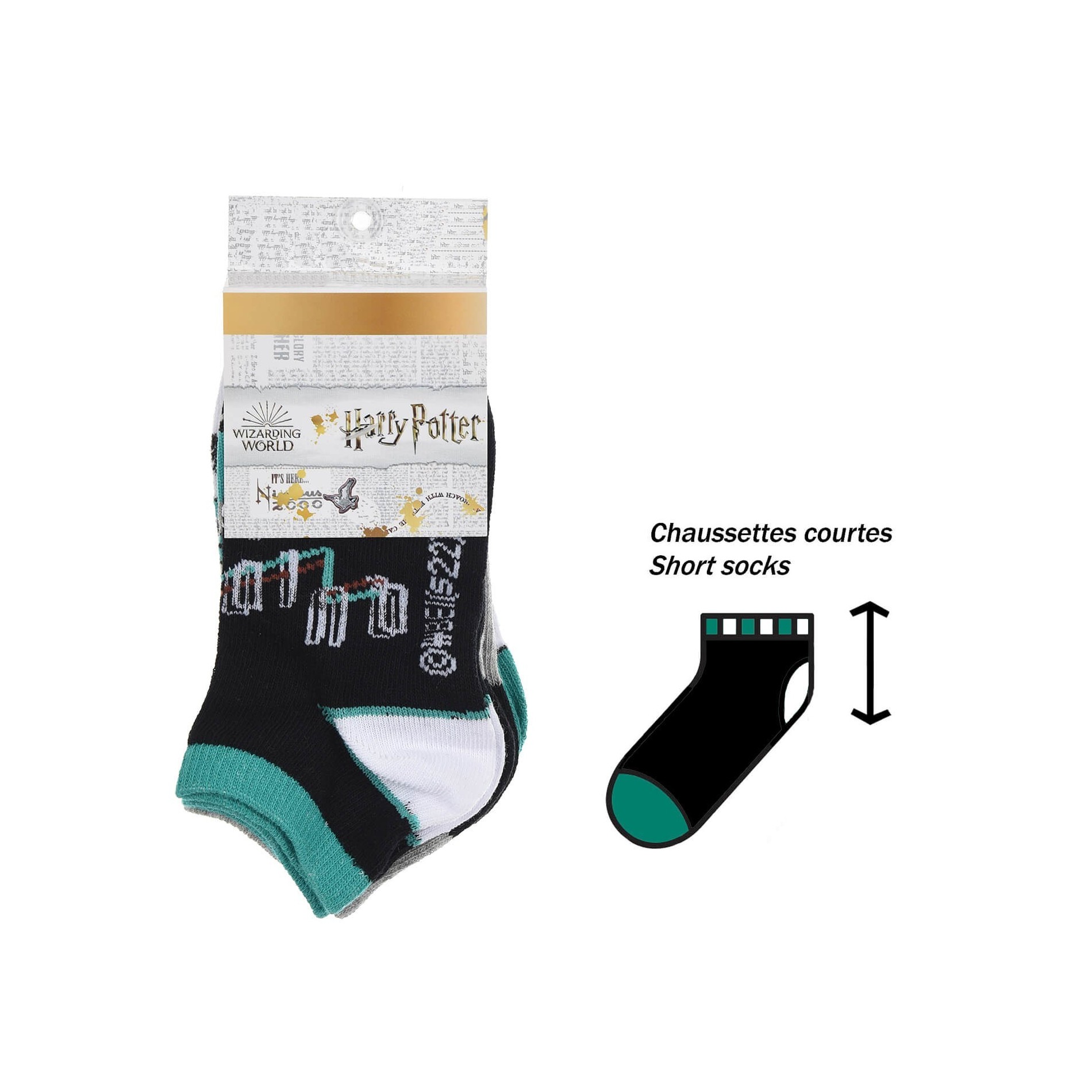 Paket med 6 par officiella Harry Potter-licensierade pojksockor. 55% bomull, 25% polyester, 18% polyamid, 2% elastan