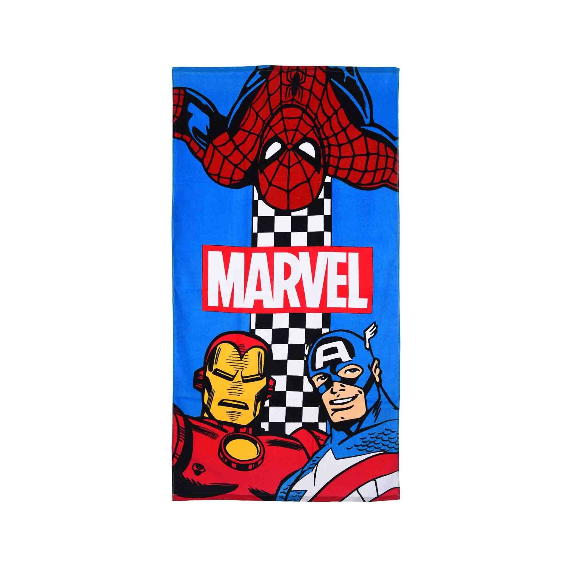 Superhjältarna kommer till stranden! På denna Avengers "Heritage"-strandhandduk finns de legendariska Spider-Man, Iron Man och Captain America i gammal Marvel-stil. Den är tillverkad av mjuk, ultraabsorberande bomull och passar perfekt för unga fans av MCU.