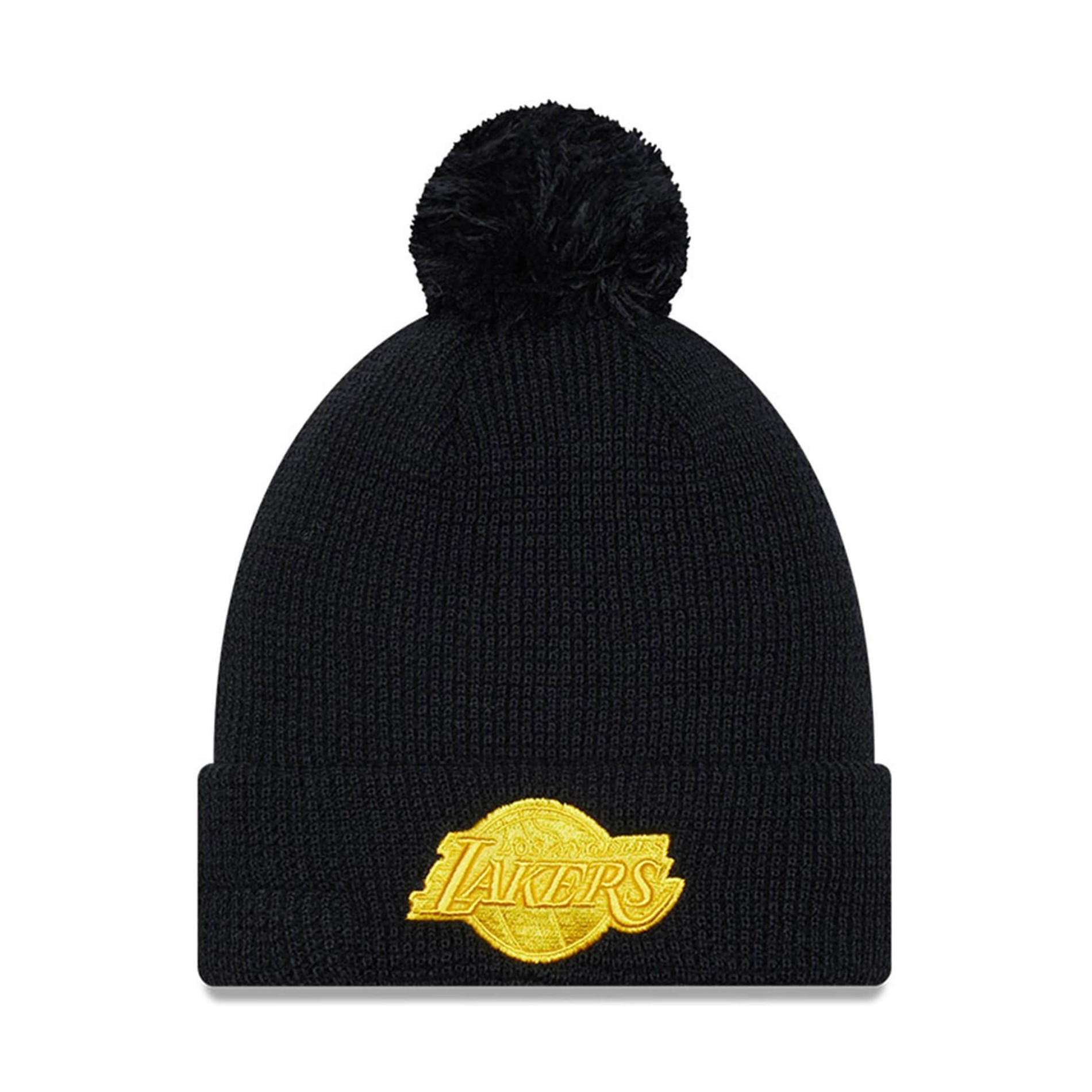 Officiell New Era Los Angeles Lakers NBA Team Pop Beanie Svart, gul team pop-logotyp på framsidan, broderad New Era-flagga på vänster sida, stickad krona med stor pom-pom tillbaka på toppen och 100% akryl.