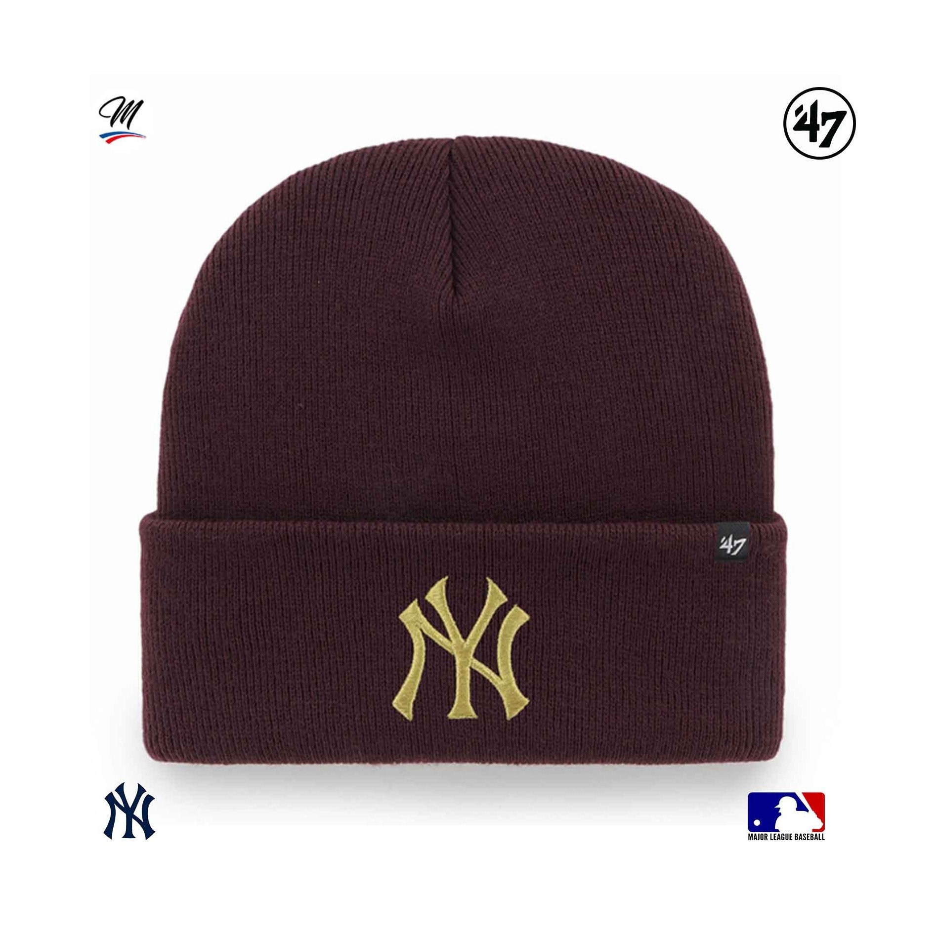 Beanie '47 New York Yankees Haymaker Metallic är en kollektion av varma mössor för vintern, med ett broderat New York Yankees i guldfärgad metallic på framsidan.