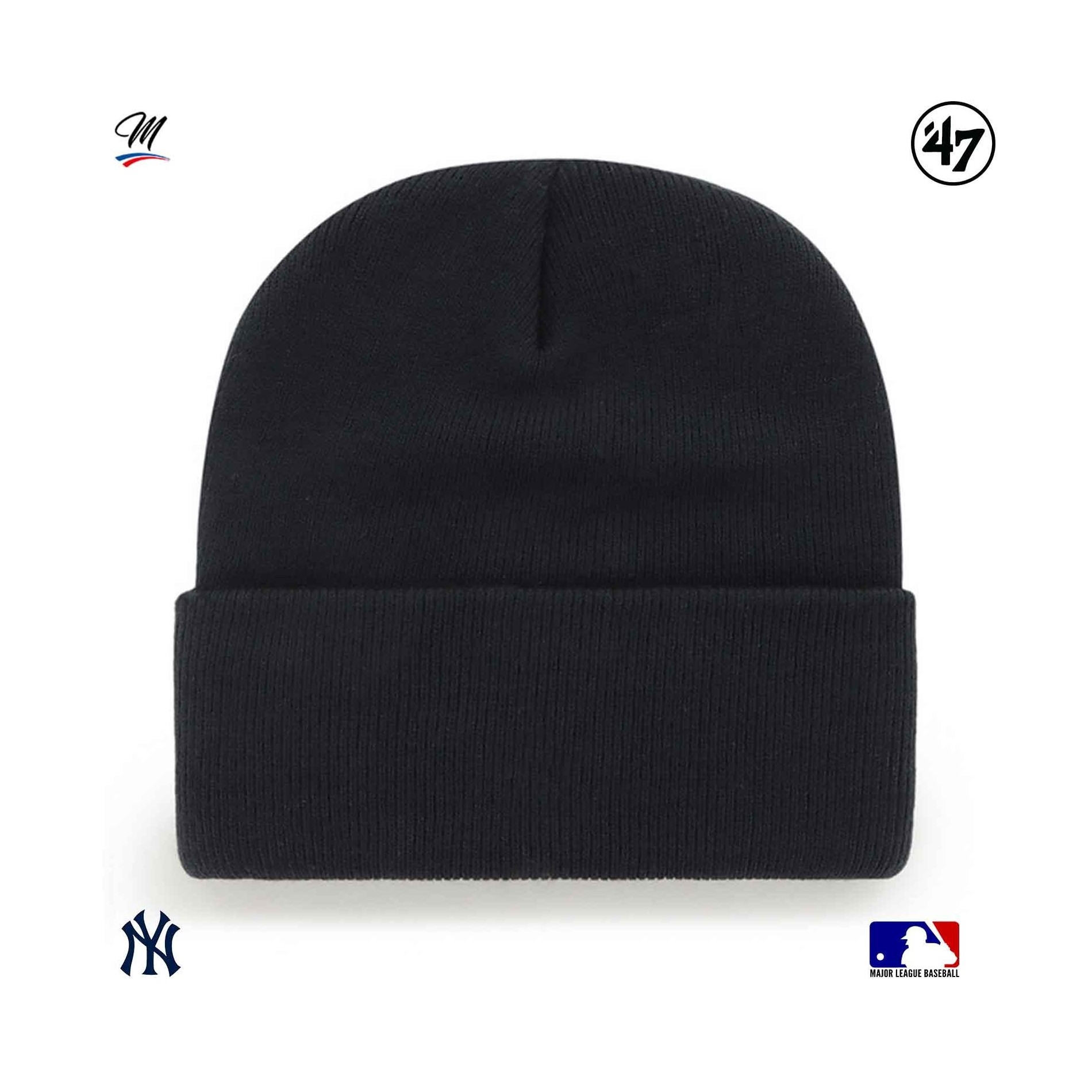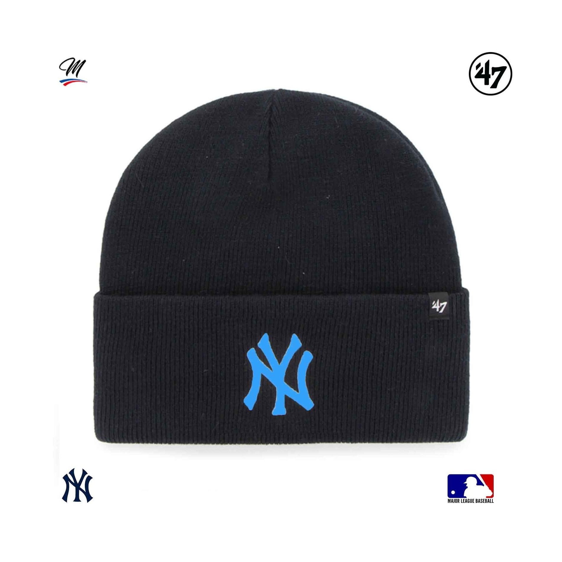Blue '47 New York Yankees Haymaker beanie är en samling varma mössor för vintern, med New York Yankees-broderi på framsidan och en liten '47-märkning på sidan.