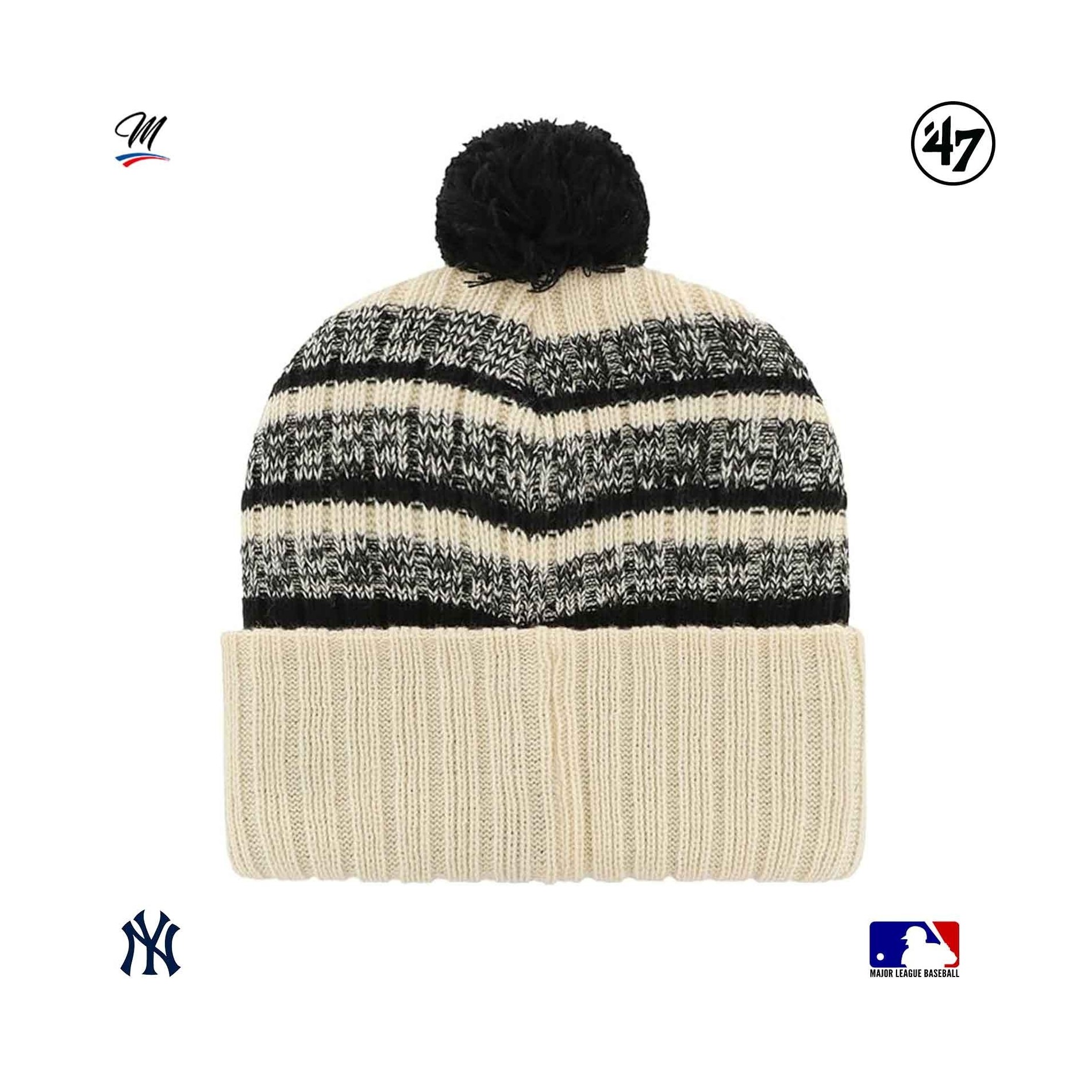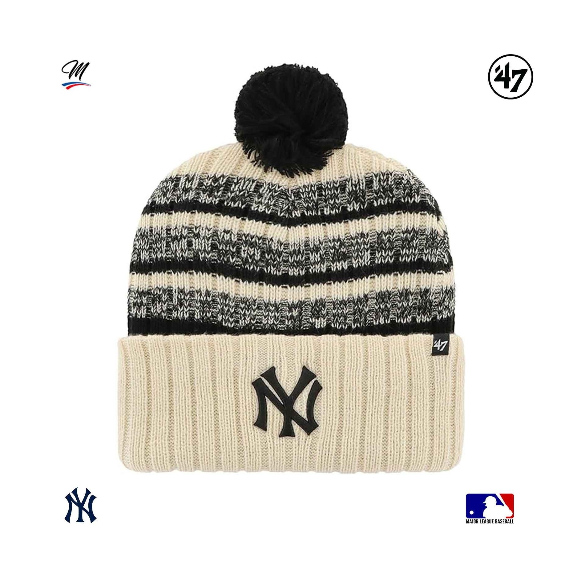 New York Yankees Cooperstown Tavern '47Beanie är en varm mö ssa med pom-pom för vintern, med New York Yankees-broderi på framsidan