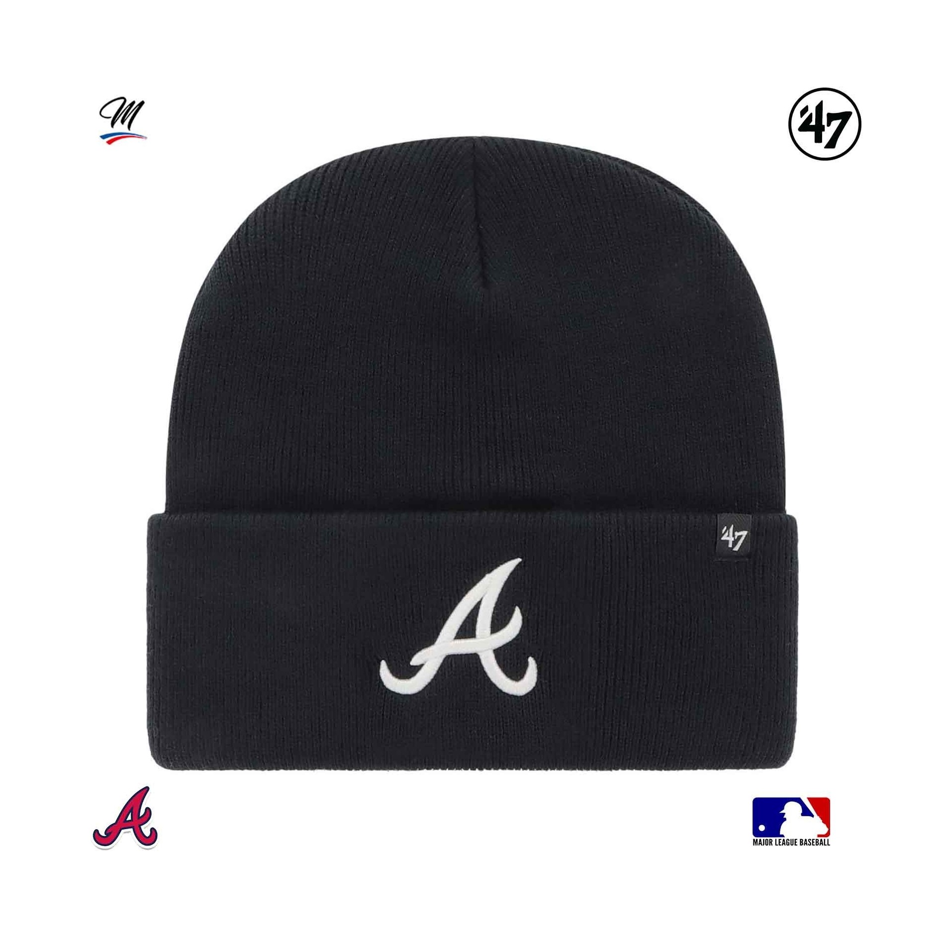 '47 Atlanta Braves Haymaker beanie är en samling varma mössor för vintern, med "A"-broderi av basebollaget Atlanta Braves på framsidan och en liten '47-märkning på sidan.