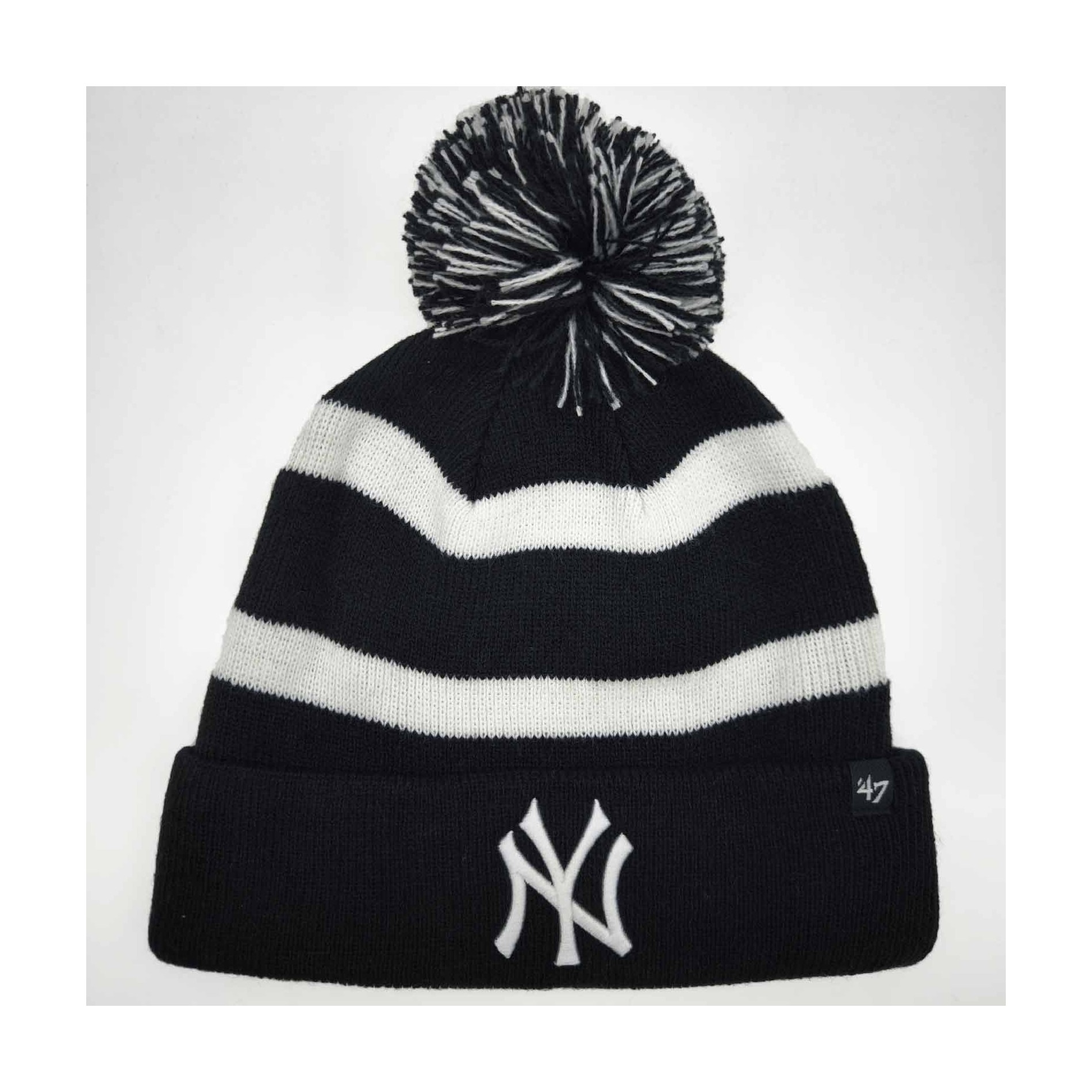 47 New York Yankees Breakaway stripe beanie är en kollektion av varma mössor för vintern, med New York Yankees-broderi på framsidan och en liten '47-etikett på sidan.