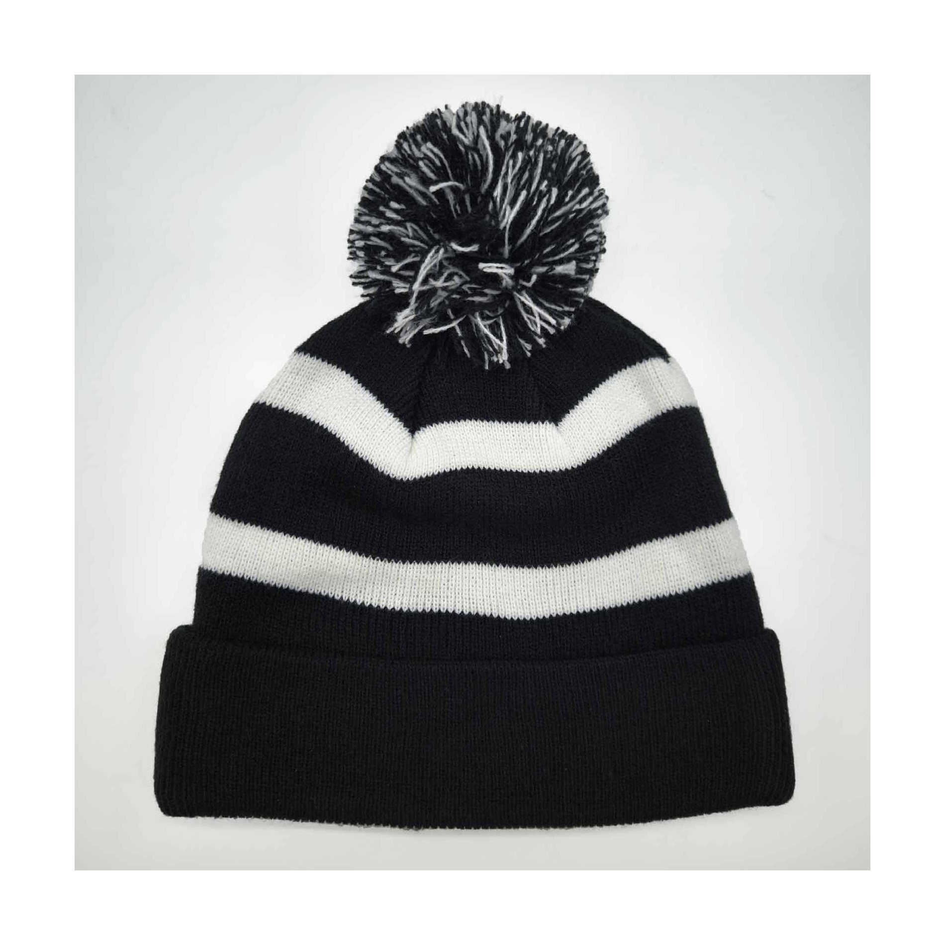 Mössan har en pom-pom-design och ett randigt mönster som ger den en dynamisk, modern look samtidigt som den är trogen sportens anda.